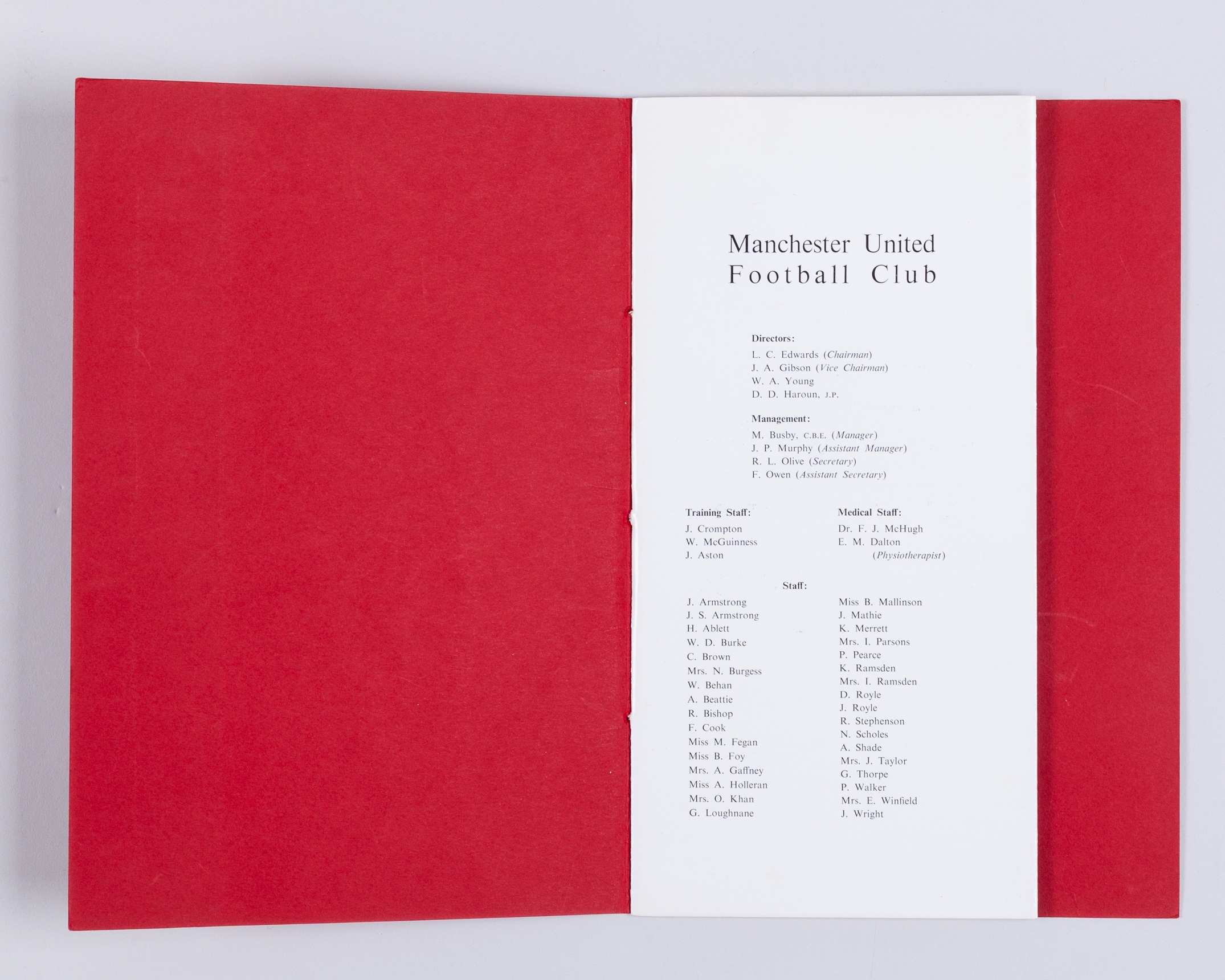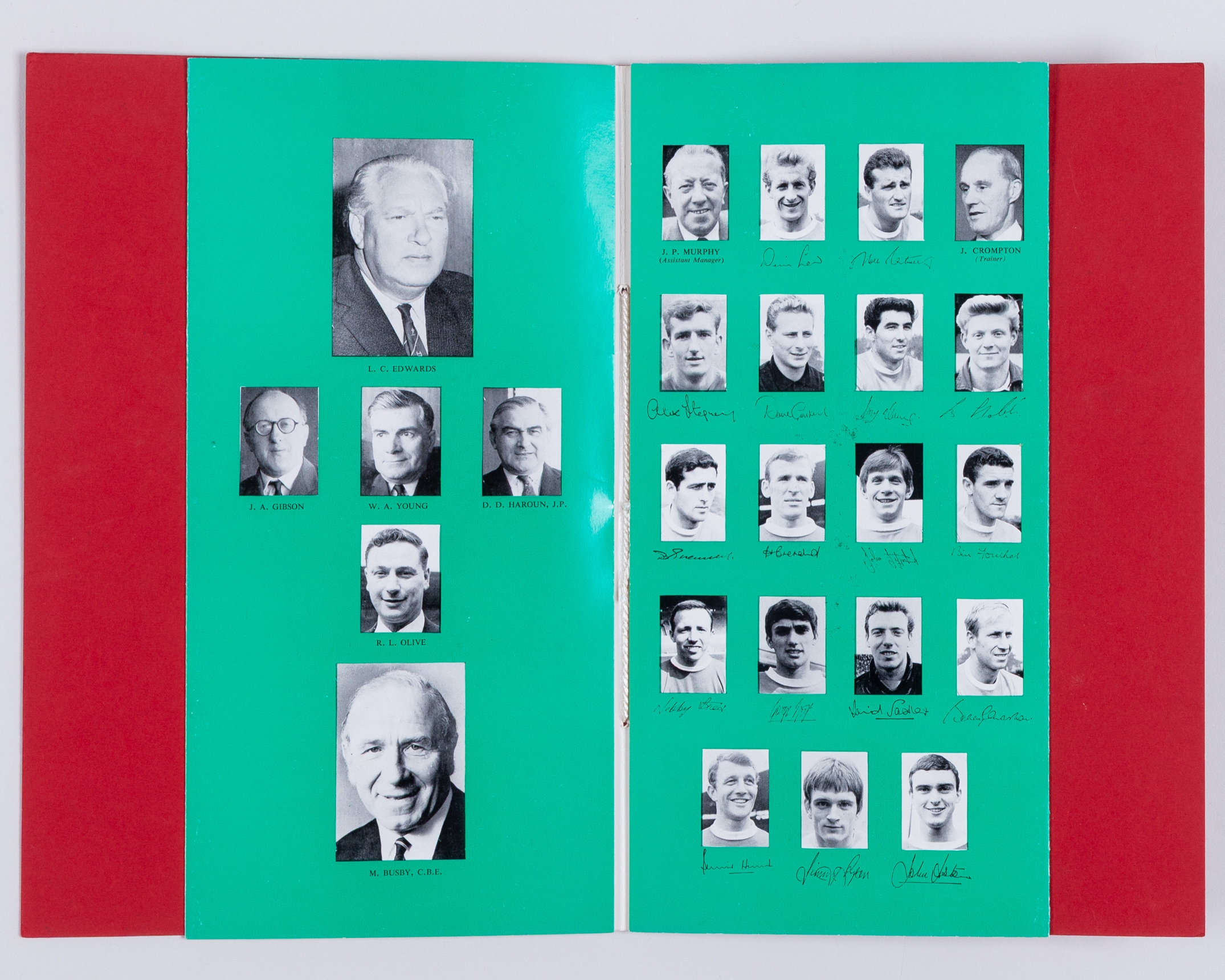 A Manchester United 1966-67 menu card to commemorate the League Championship
