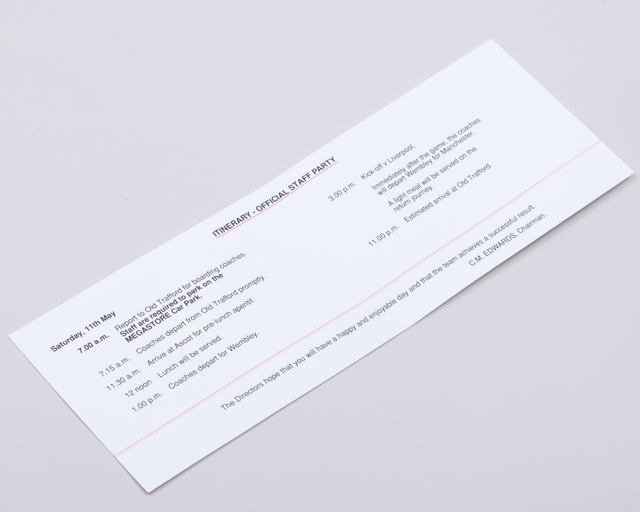 Manchester United 1996 F.A.Cup Final staff itinerary