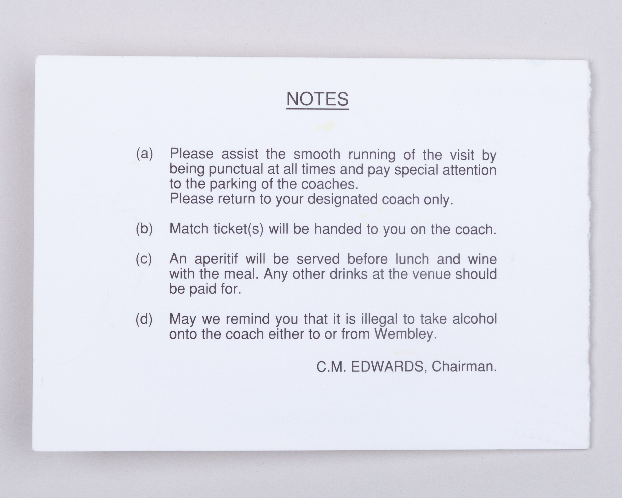 Manchester United 1996 F.A.Cup Final staff itinerary, with two number 6 coach tickets (3)