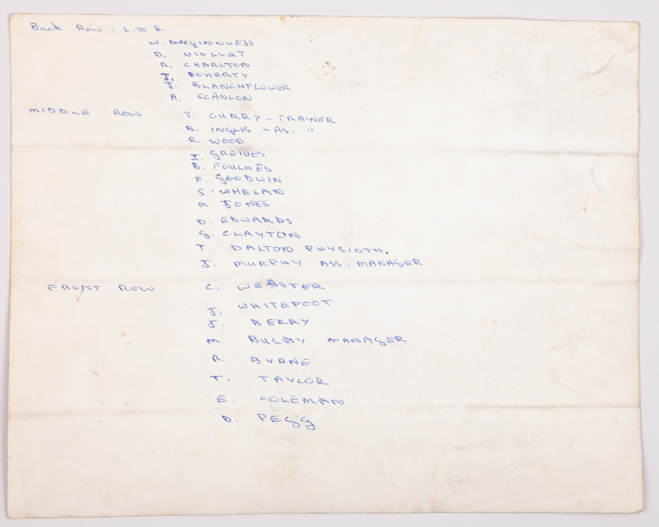 Real Madrid: a page of autographs circa 1958