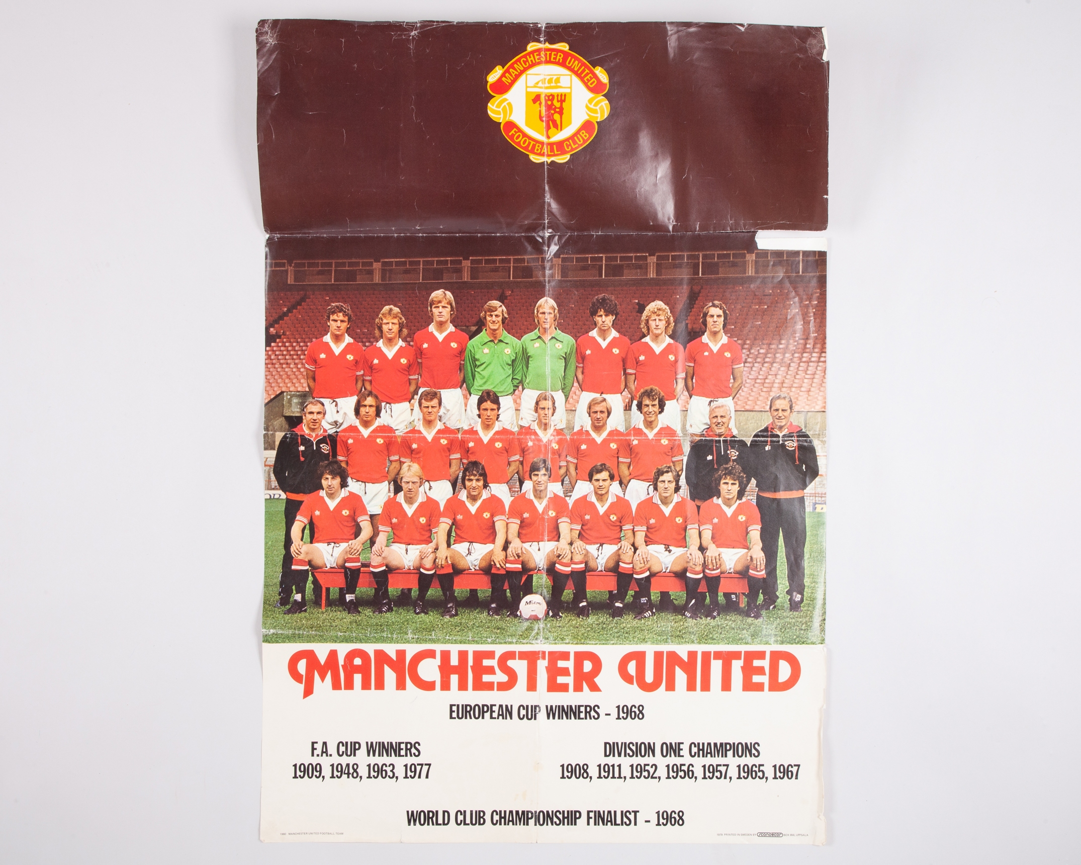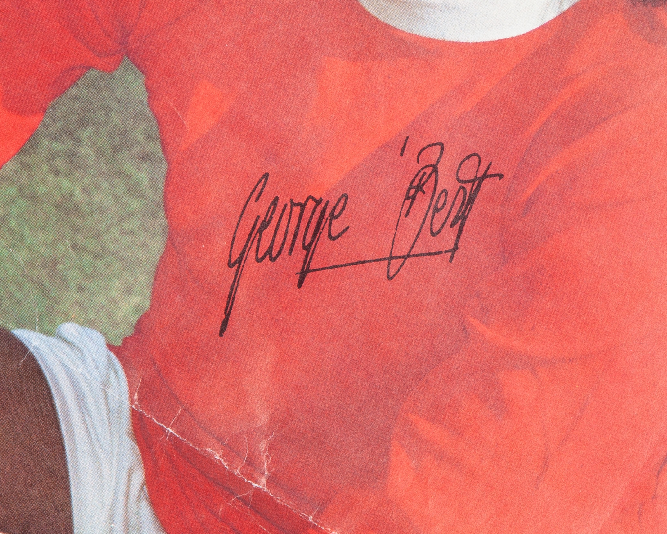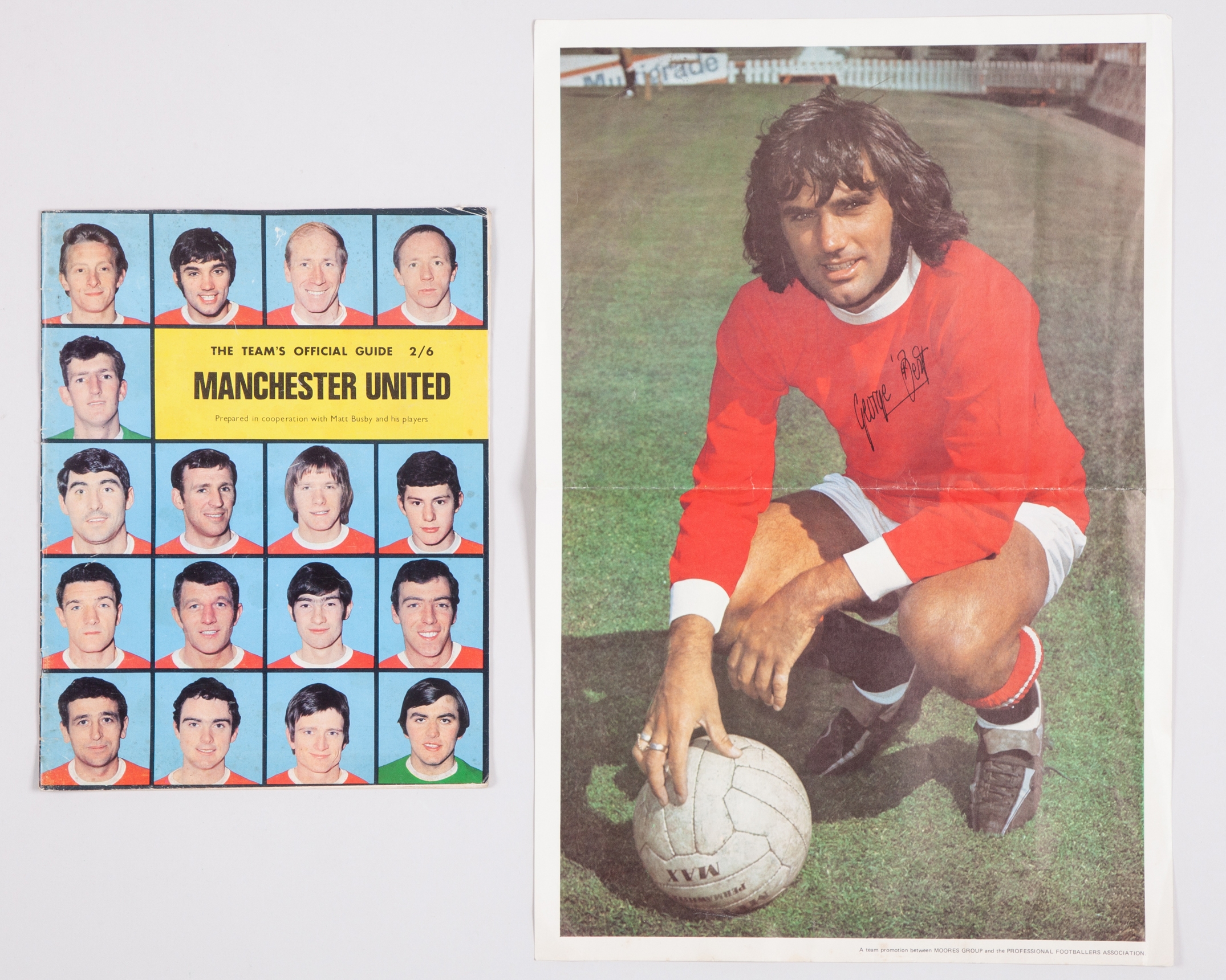 1999 Toyota Cup Final Football Poster original poster for the Manchester United v Palmeiras final in Tokyo, 102 x 75cm, George Best signed poster, magazine and team poster (4)