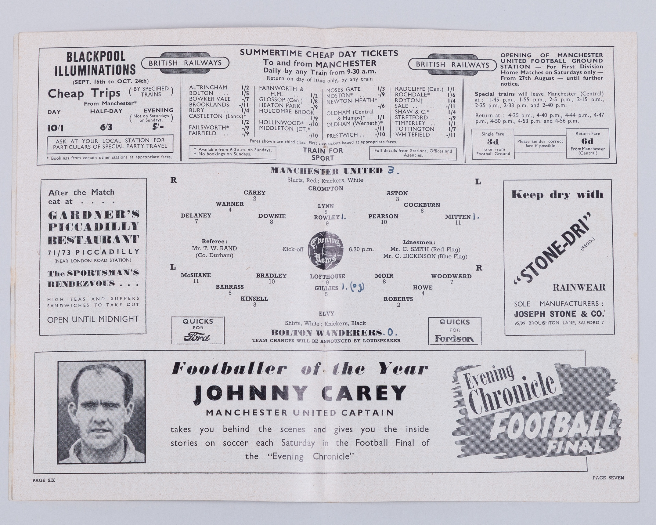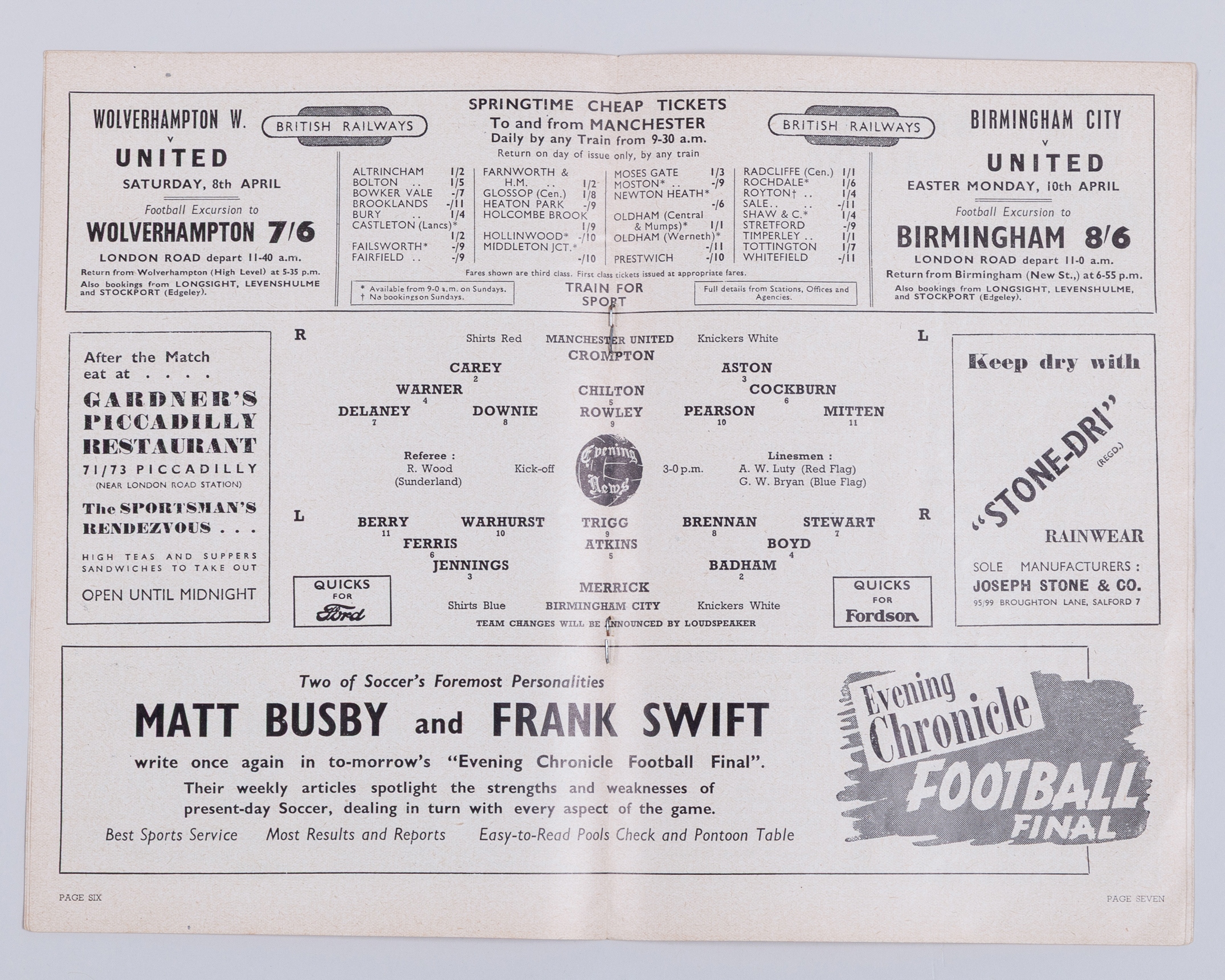 Seventeen Manchester United home league and cup match programmes, 1949-50