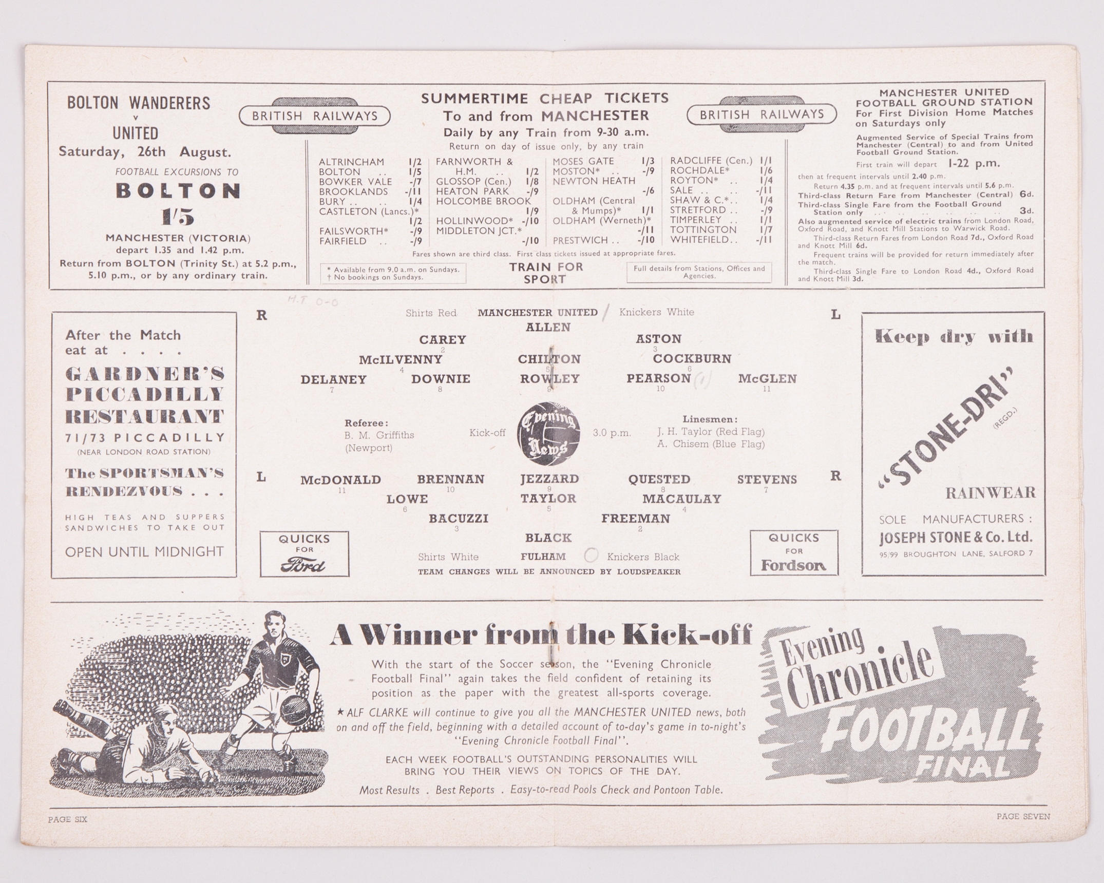 Five Manchester United home match programmes, 1950