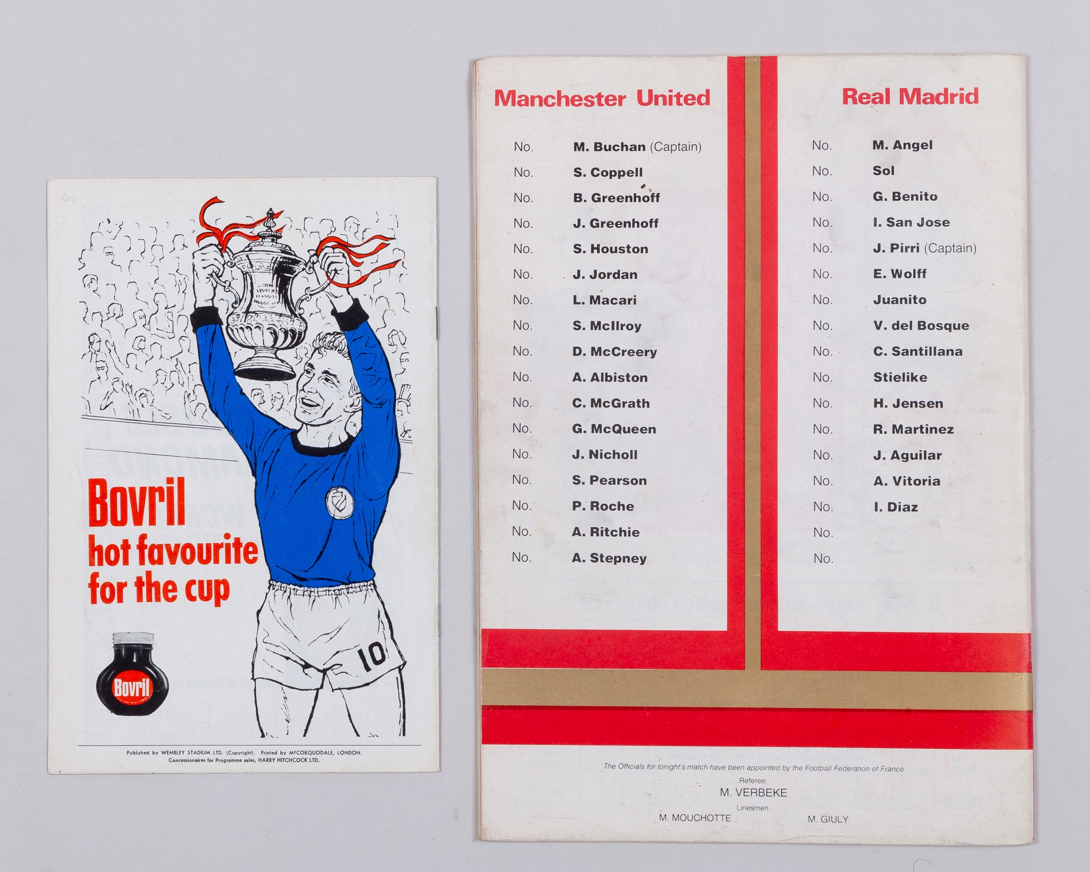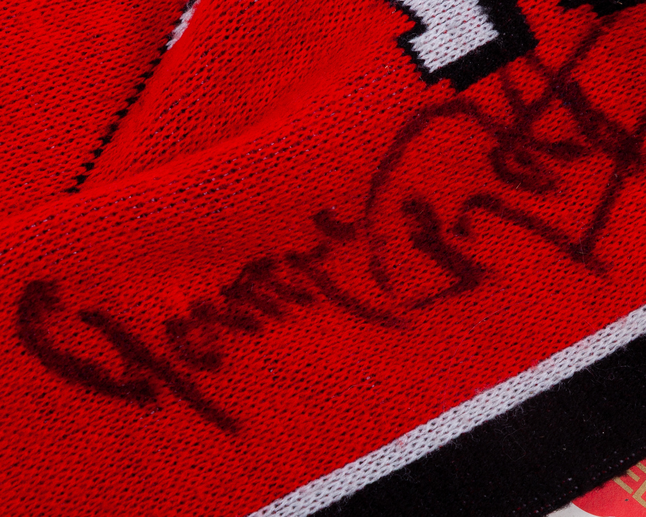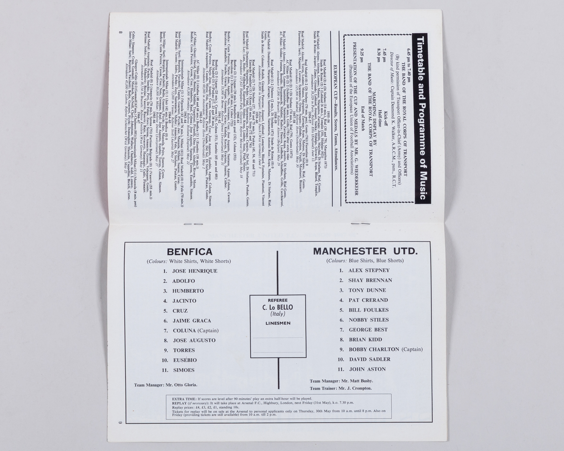 George Best autographed Manchester United scarf, Manchester United v. Benfica European Cup Final programme 29th May 1968, Manchester United Centenary souvenir programme, George Best red rosette (4)