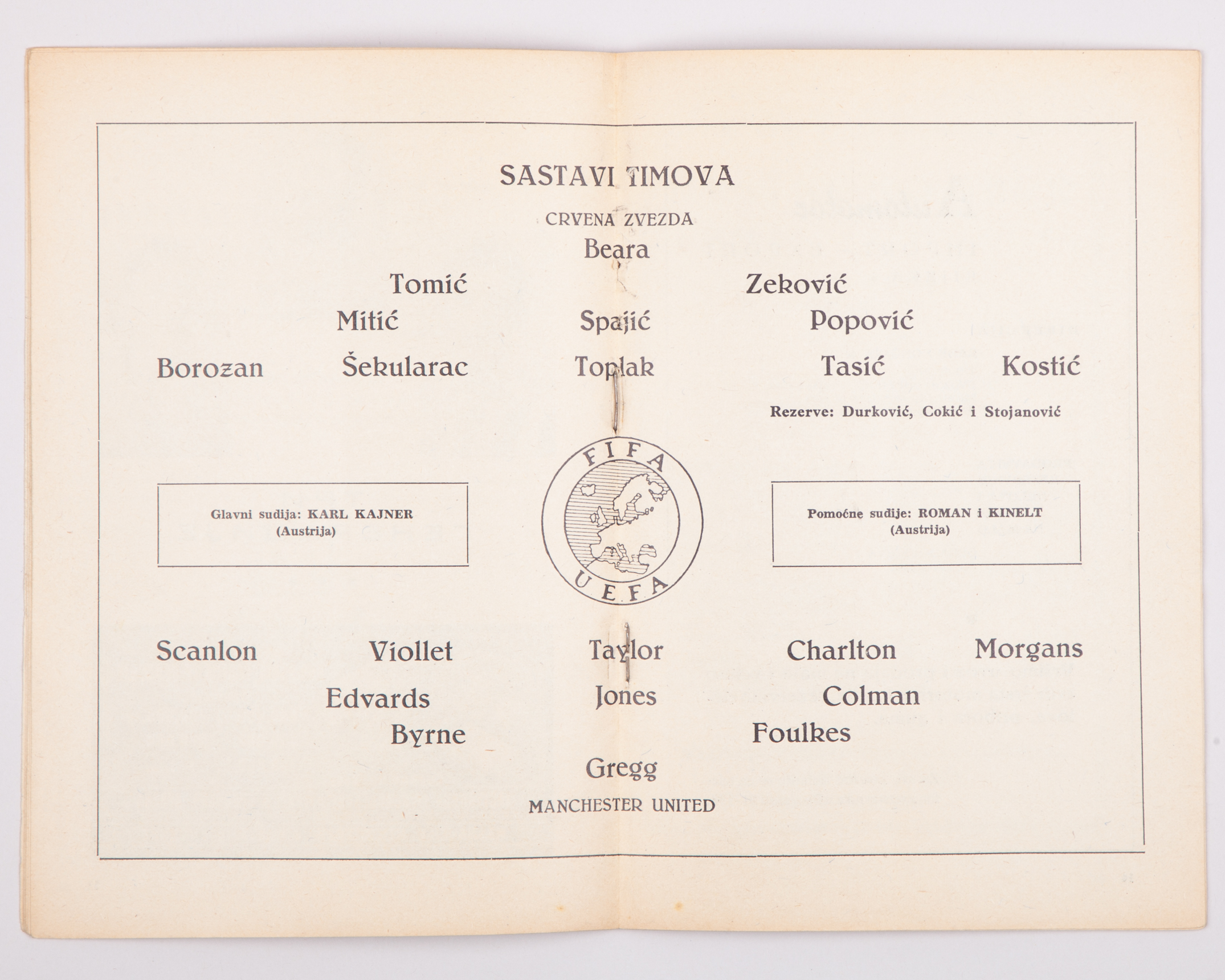 Red Star Belgrade v. Manchester United, European Cup match programme, 5th February 1958