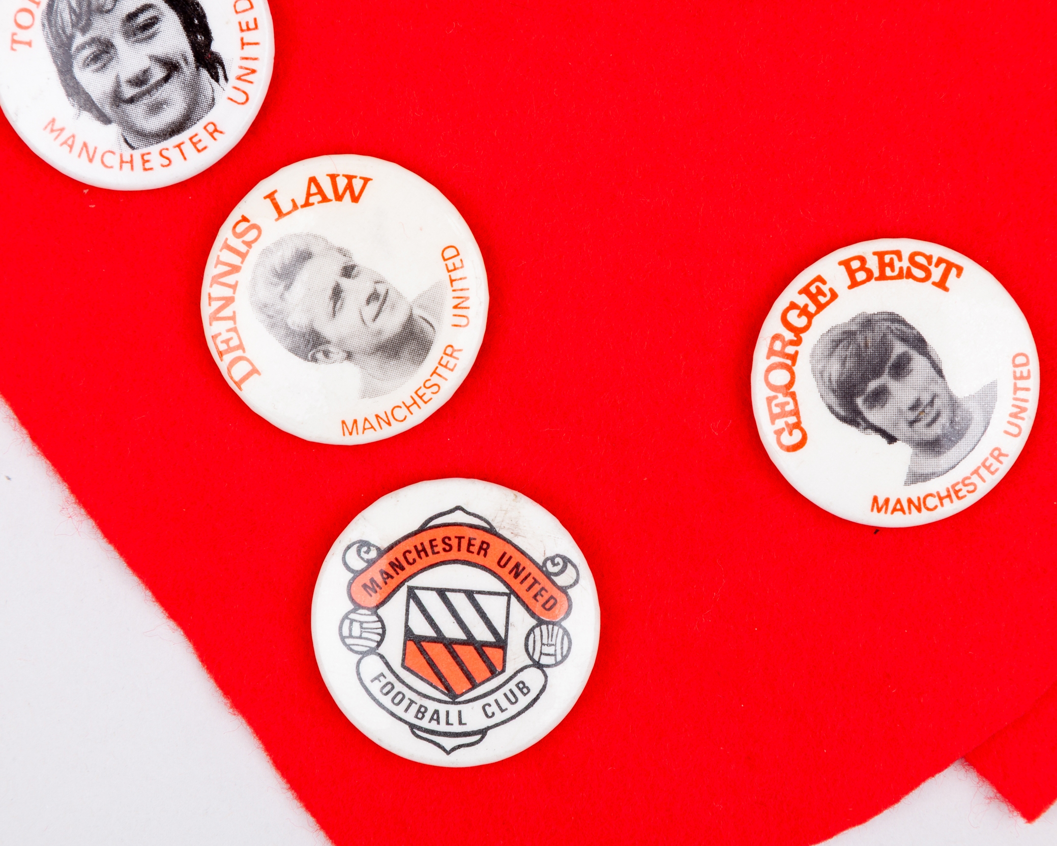 A collection of twelve Manchester United lapel badges 1960/70s, including Brian Kidd, Bobby Charlton, Nobby Stiles etc