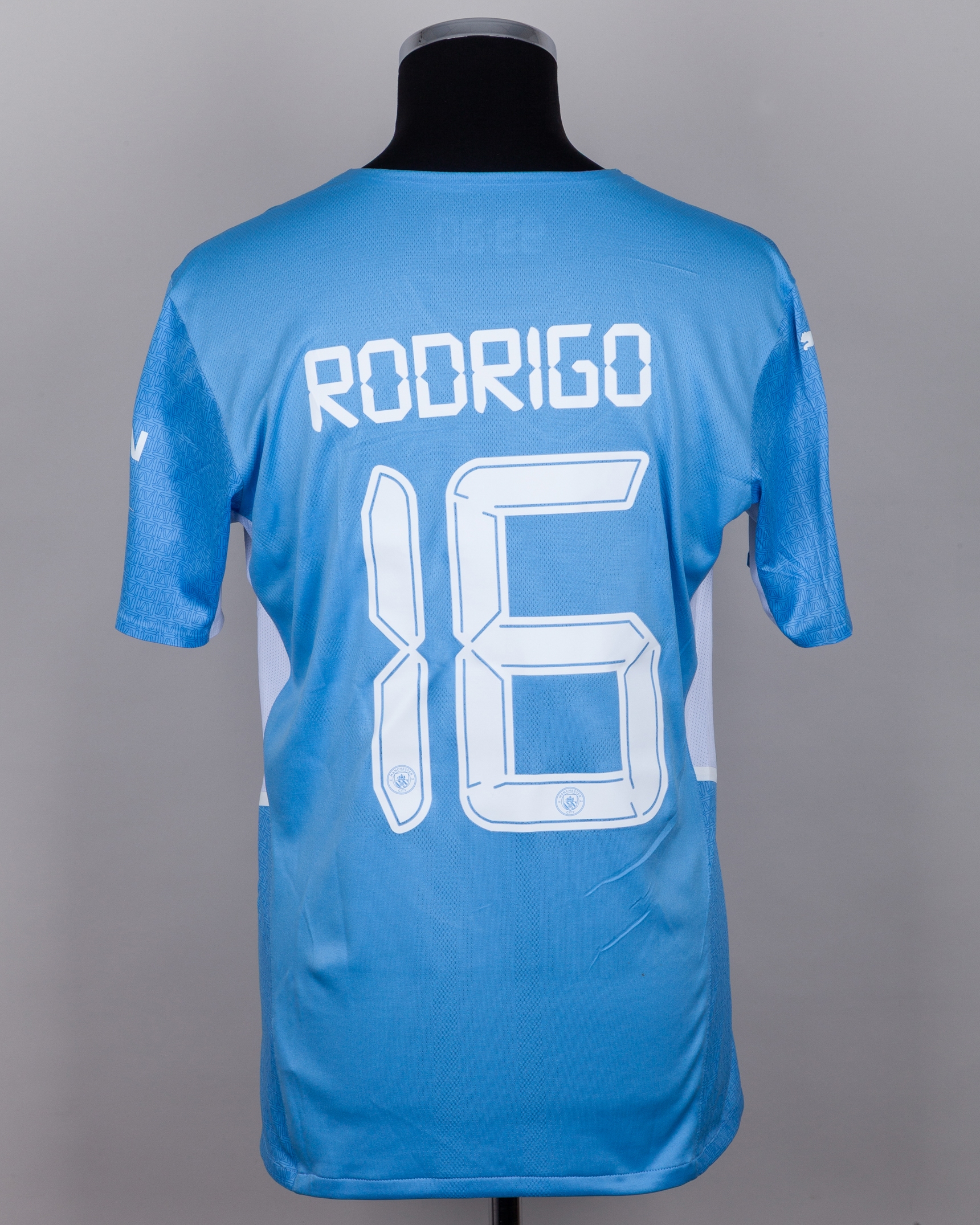 Rodrigo sky-blue No.16 Manchester City Champions League match issued shirt, 2021-22