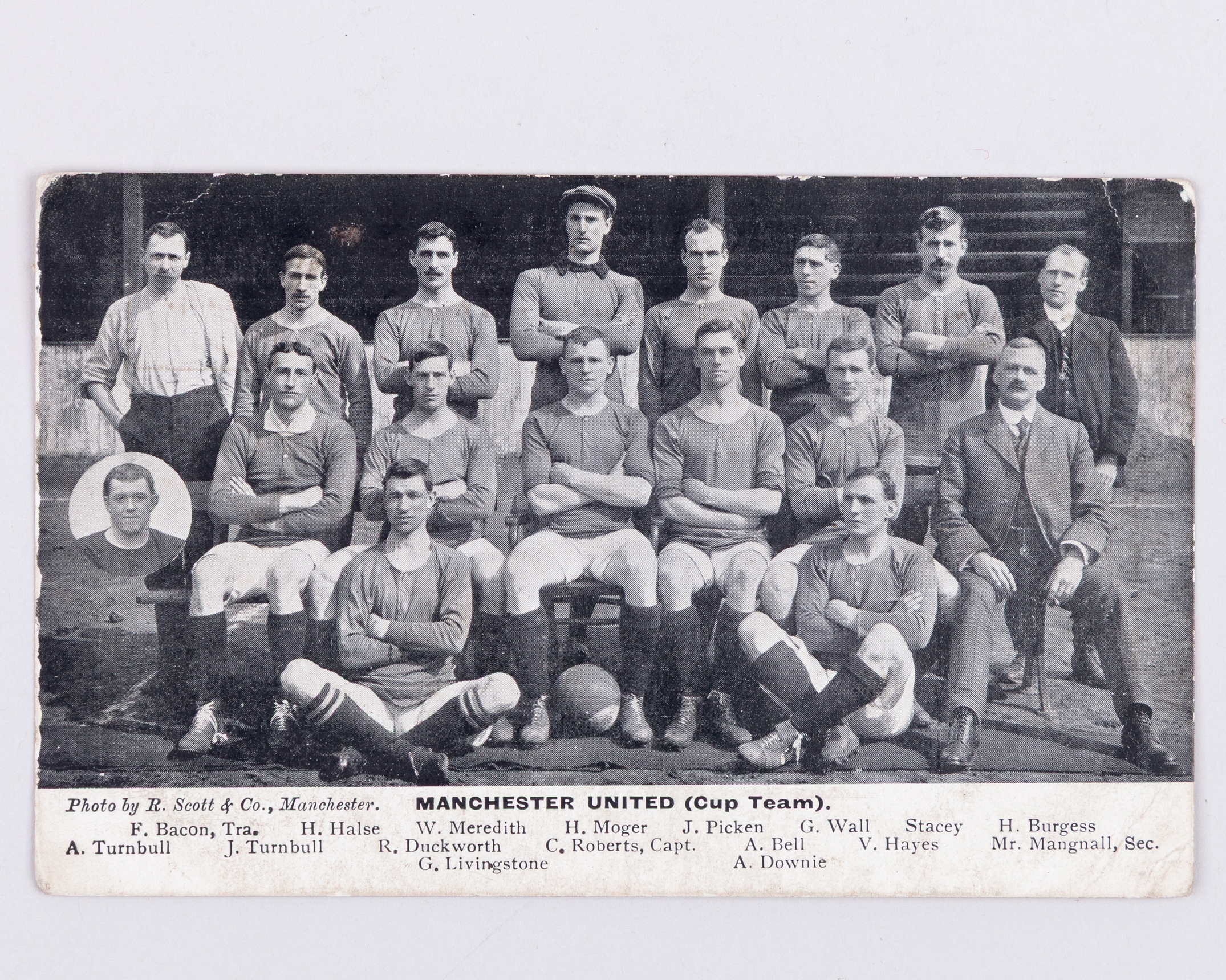 A Manchester United team line-up postcard, by Scott