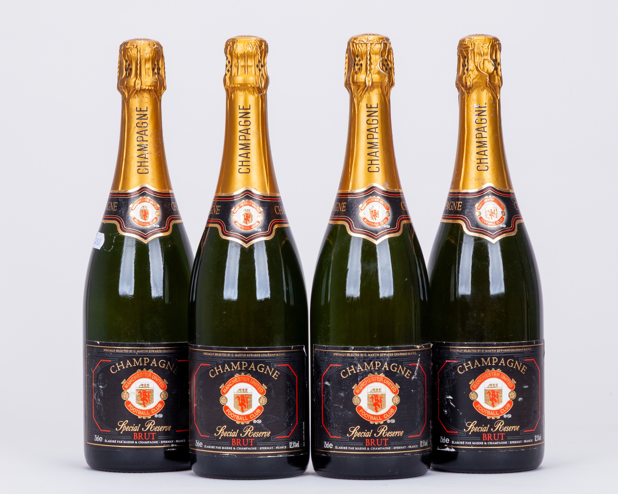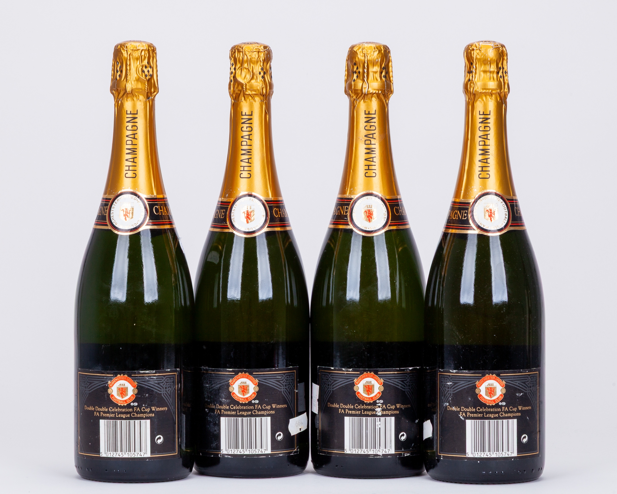 4 bottles Special Reserve Brut Champagne, to commemorate The Double Double, F.A.Cup and Premier League Champions, 75cl 12.5%, specially selected by C Martin Edwards Chairman Manchester United Football Club