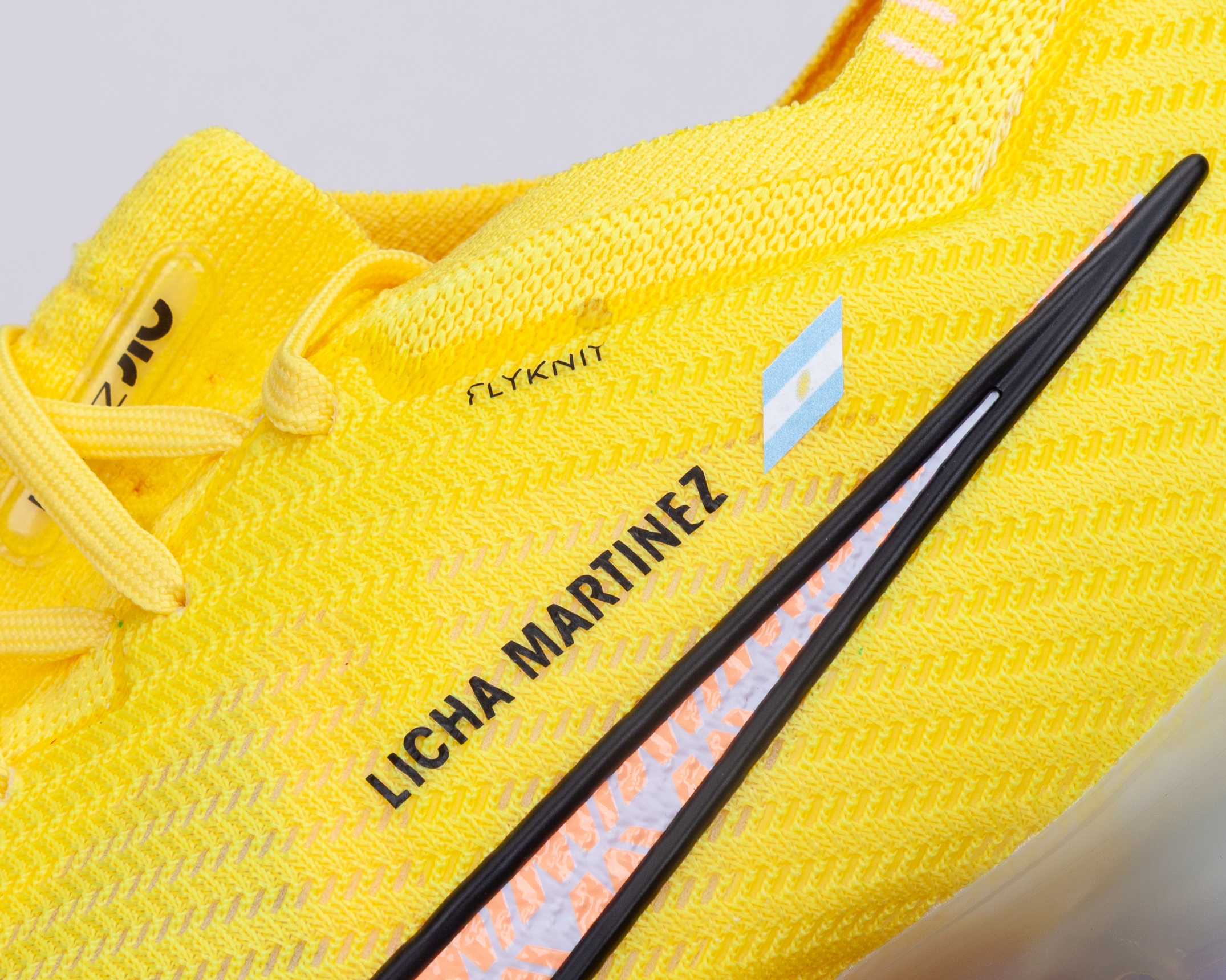 Lisandro Martinez yellow and peach Nike Mercurial football boots, 2022-23, UK9.5, with LICHA MARTINEZ decal