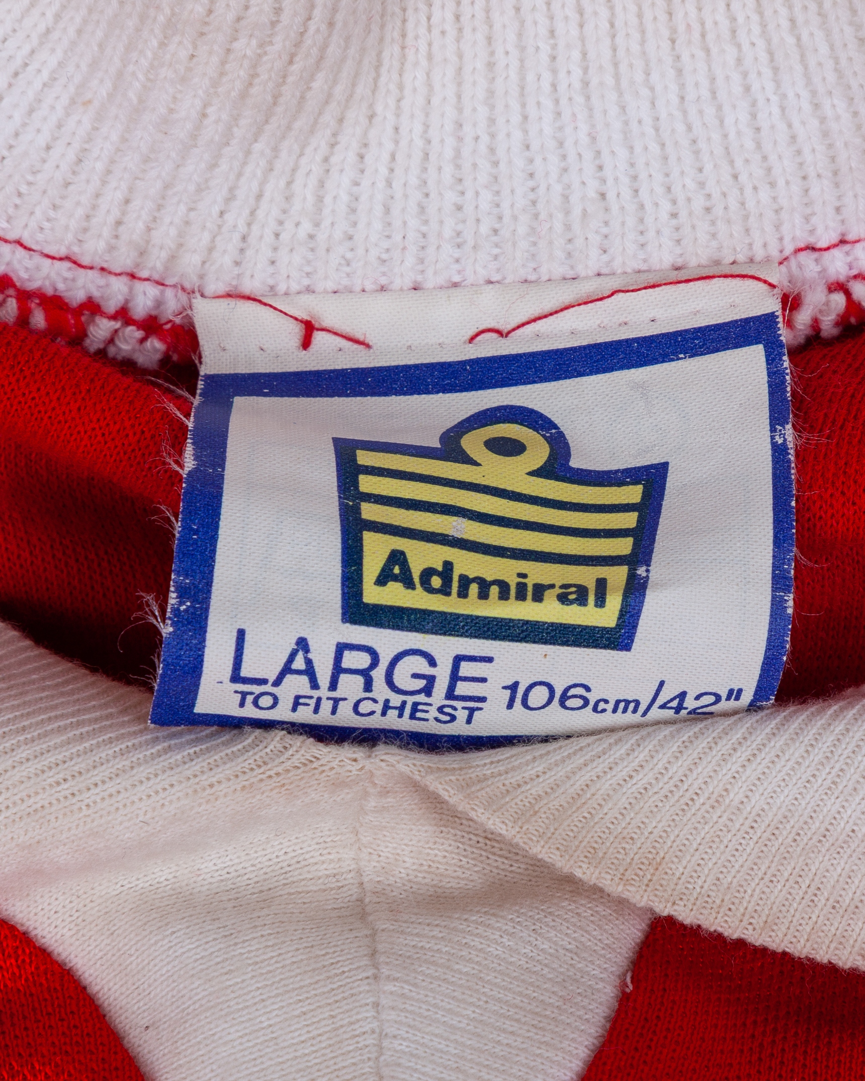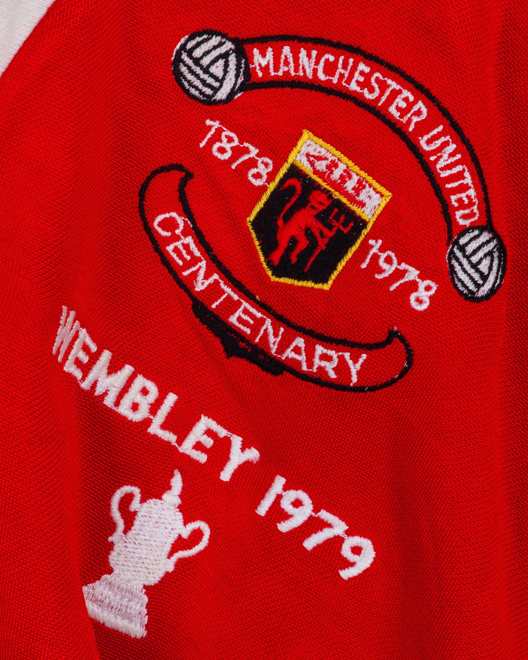 The above shirt was worn by Gordon McQueen and gained by Frank Stapleton as a swap after the memorable F.A.Cup Final against Arsenal played on 12th May 1979, the match ending in a 3-2 victory to Arsenal, McQueen scoring United's opening goal in the 86th minute