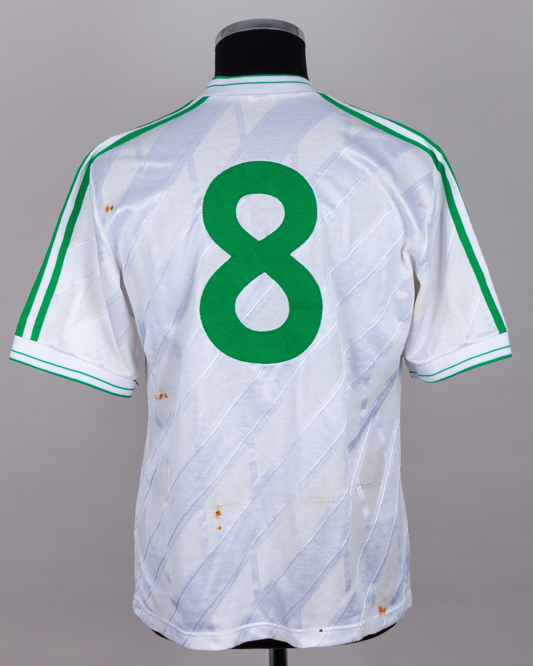 Sammy McIlroy white and green No.8 Northern Ireland short-sleeved shirt, 1986