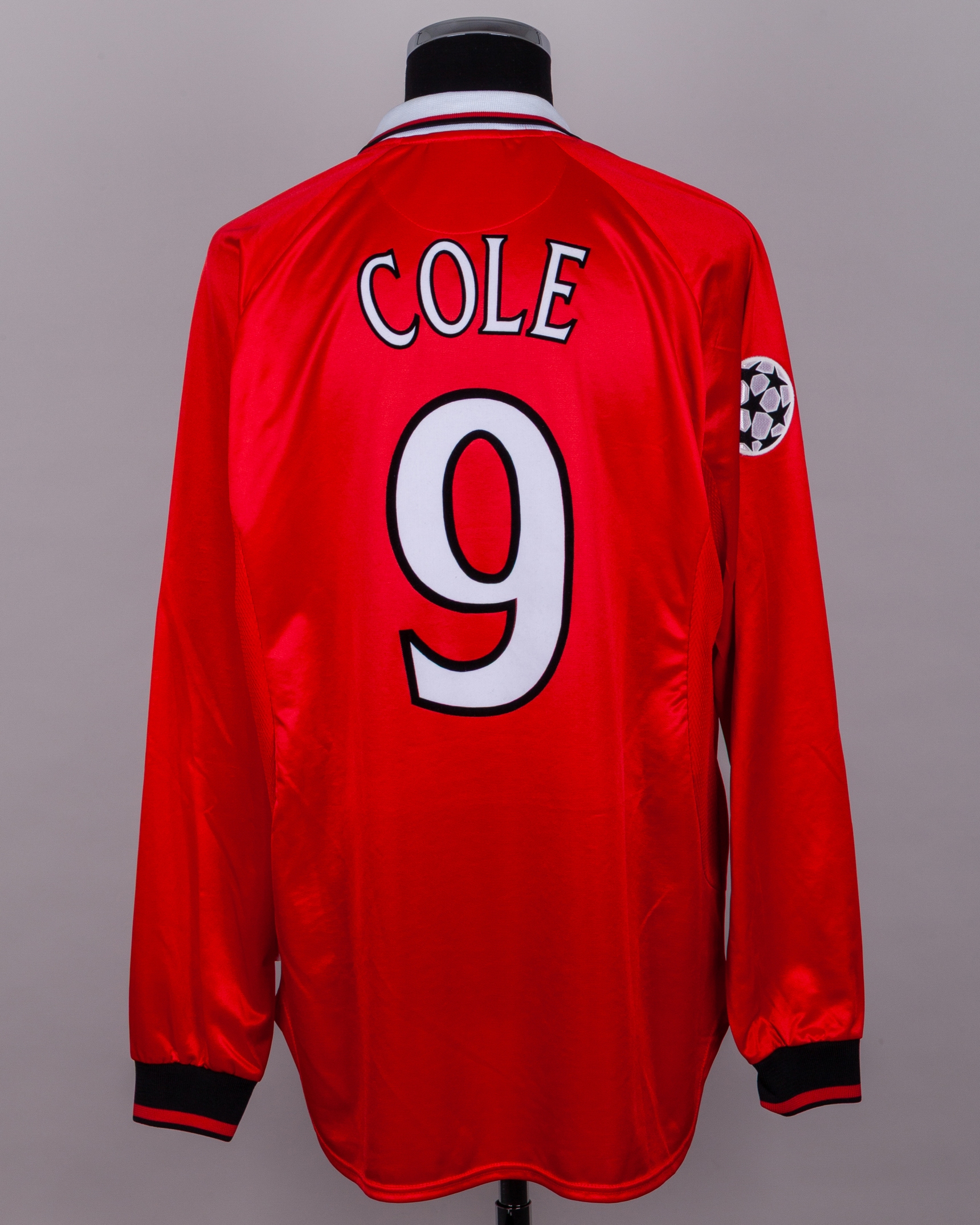 Andy Cole red No.9 Manchester United Champions League issued long-sleeved shirt, 1999-2000