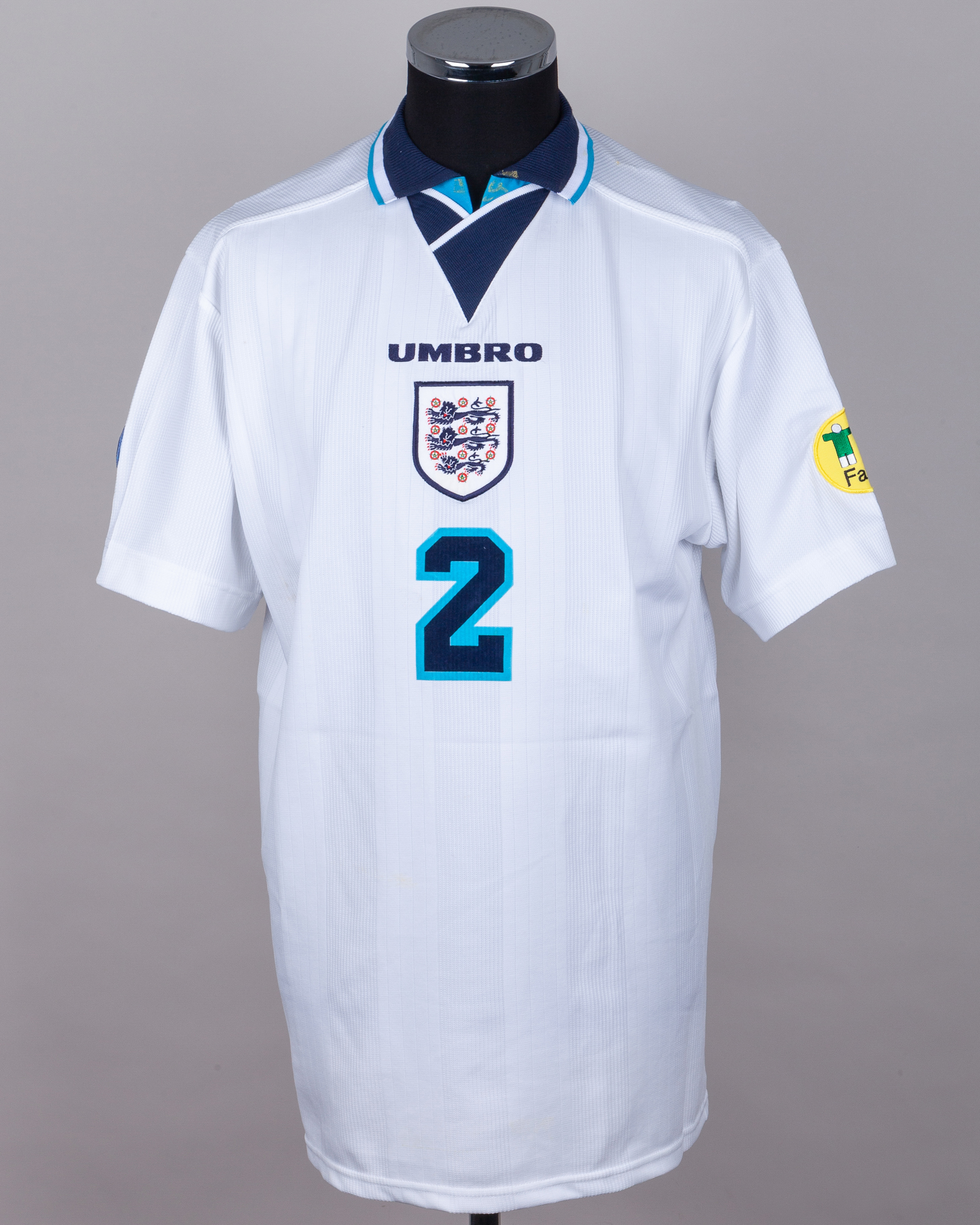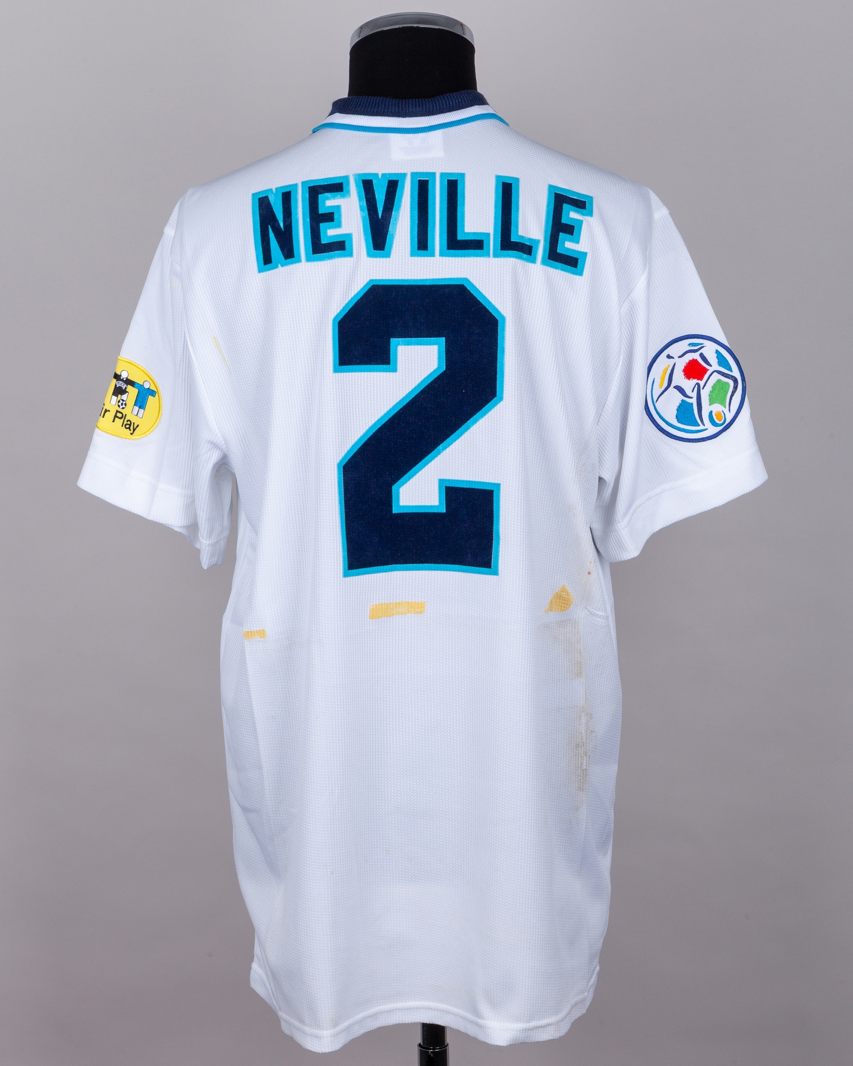 Gary Neville white England v. Scotland Euro 96 short-sleeved shirt, 1996