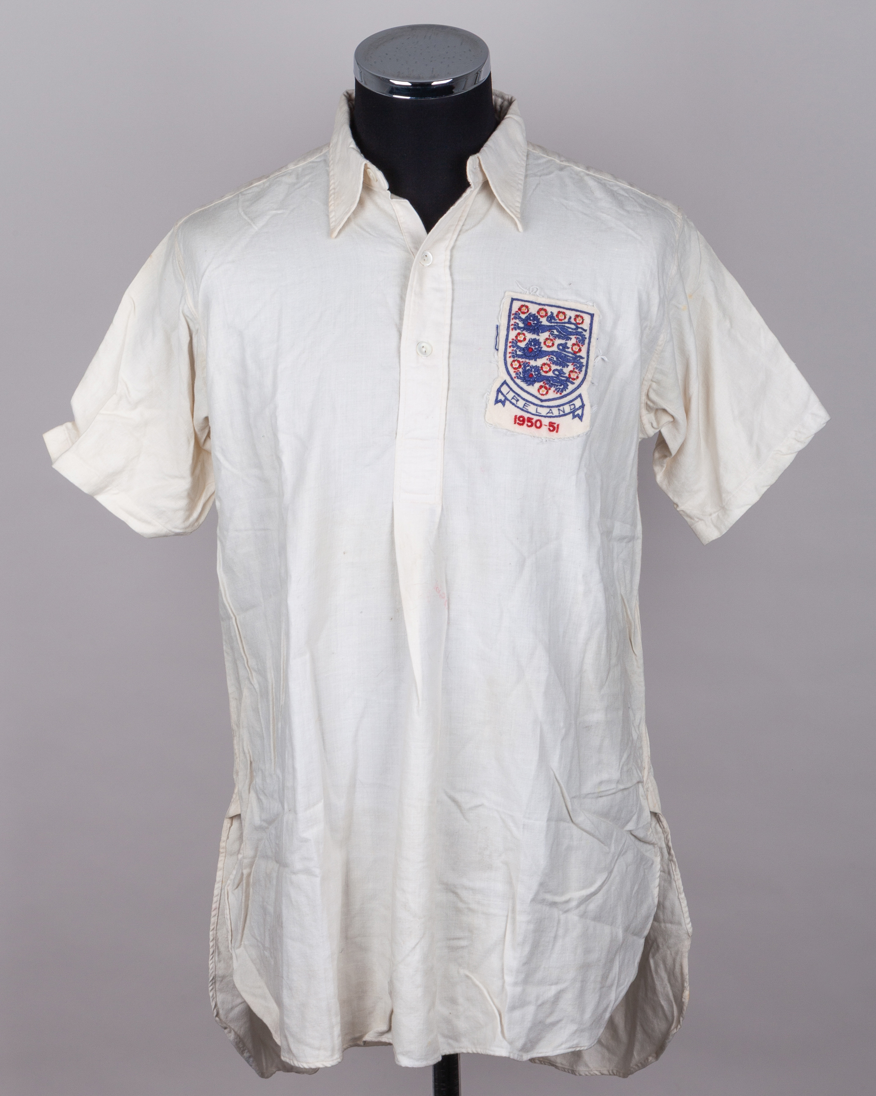 John Aston white No.3 England v. Northern Ireland match worn short-sleeved shirt, 1950