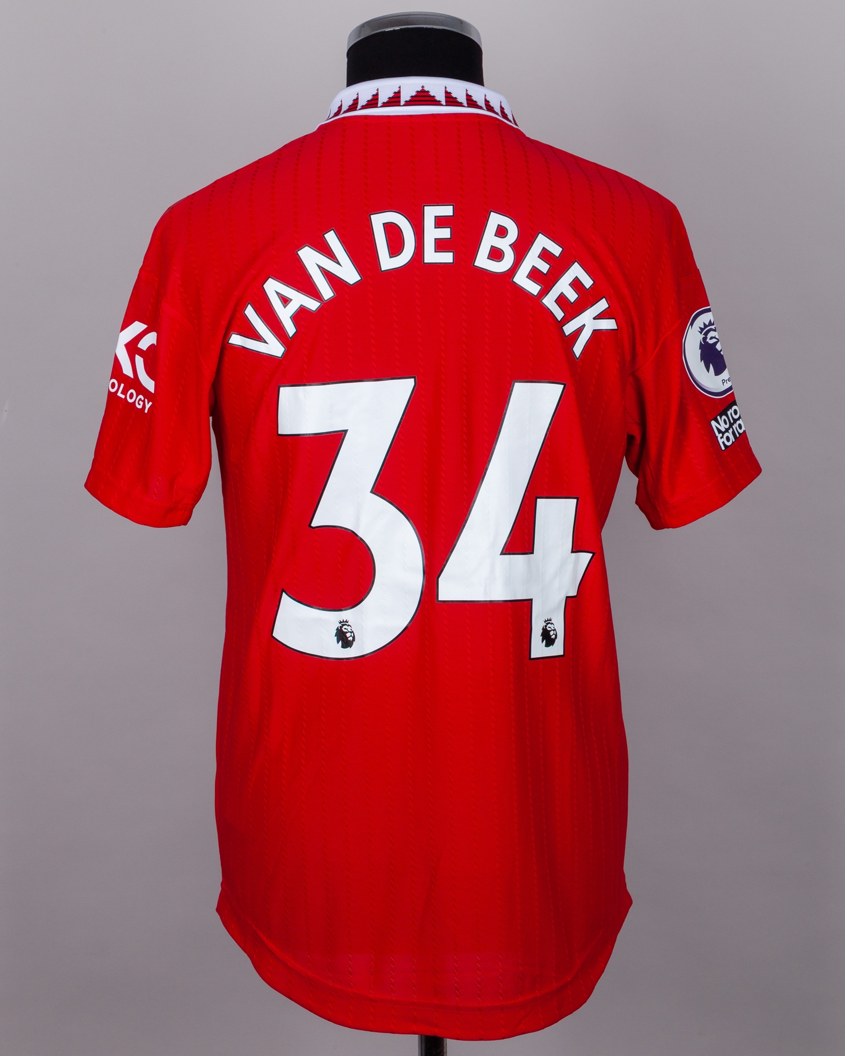 Donny Van De Beek red No.34 Manchester United issued short-sleeved shirt, 2022-23