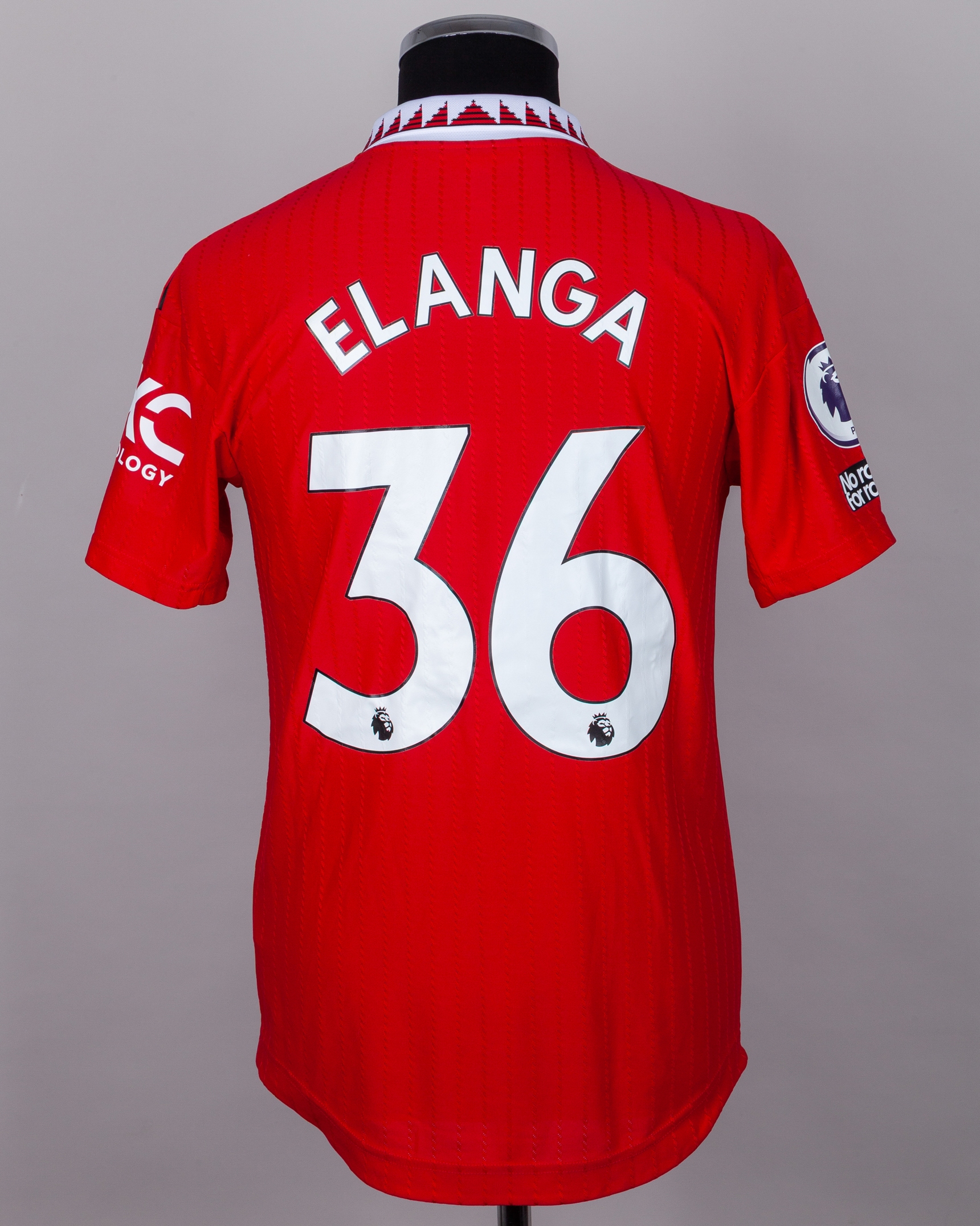 Anthony Elanga red No.36 Manchester United issued short-sleeved shirt, 2022-23