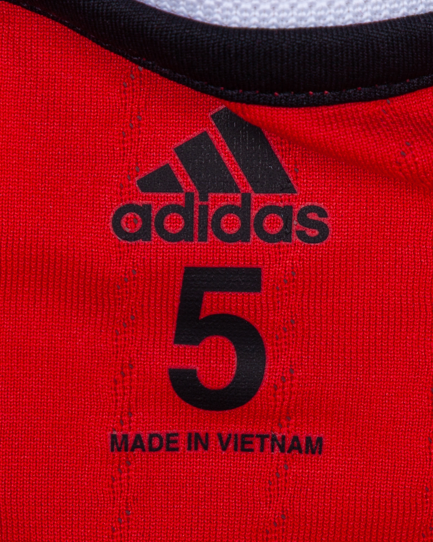 Anthony Elanga red No.36 Manchester United issued short-sleeved shirt, 2022-23, Adidas, 5, with button-up collar and printed badge, with embroidered poppy, the reverse lettered ELANGA, the right sleeve with Premier League flash