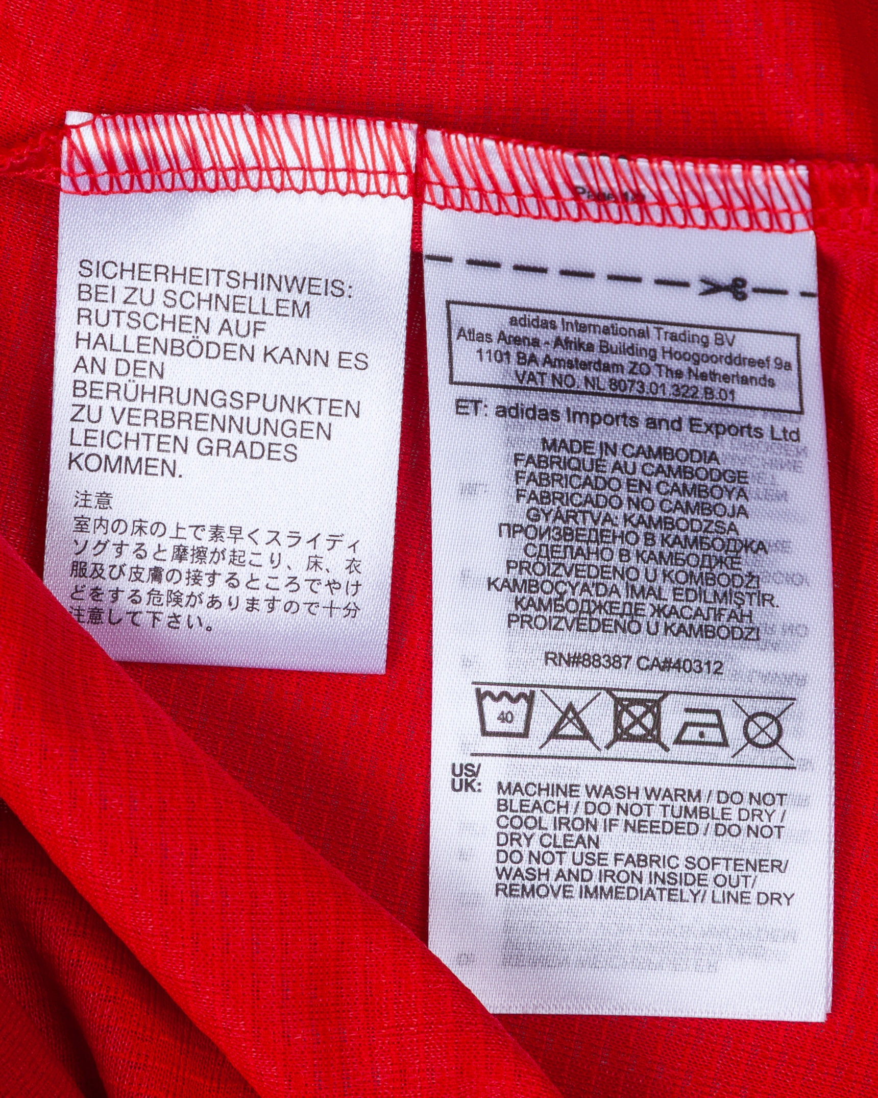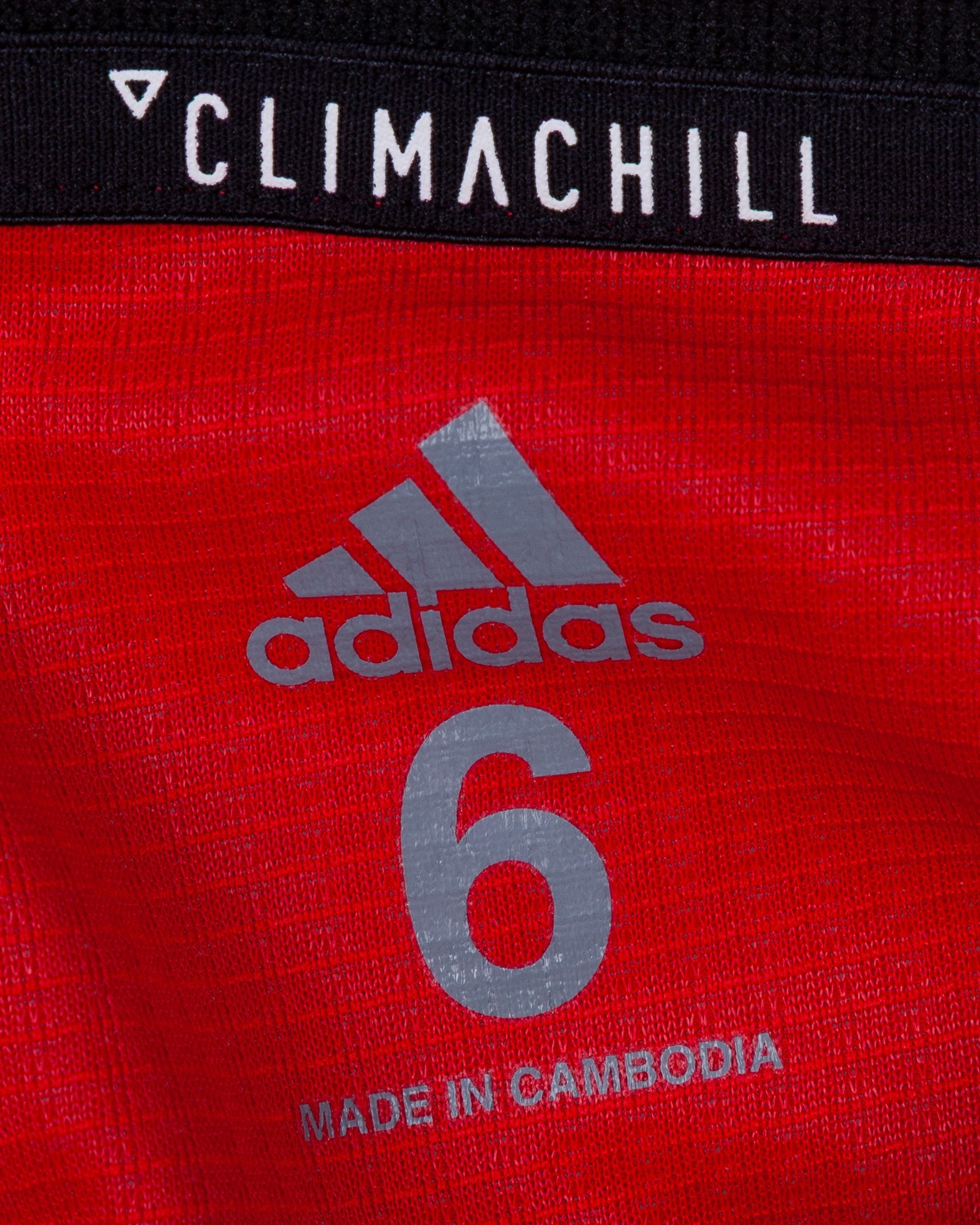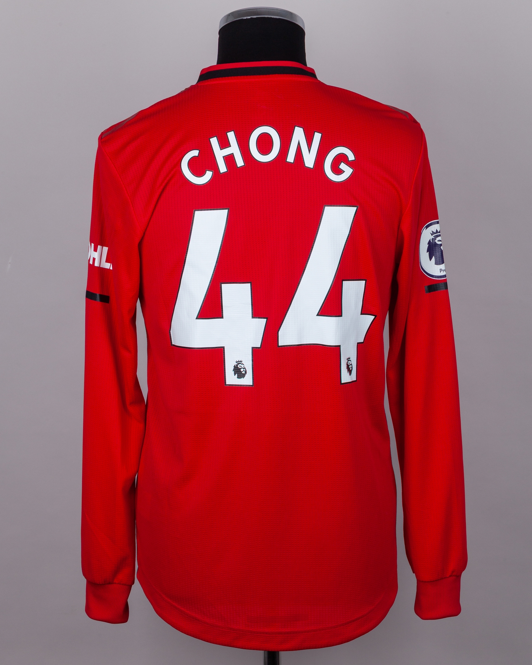 Tahith Chong red No.44 Manchester United issued long-sleeved shirt, 2019-20, Adidas, 6, with crew-neck collar and printed badge, the reverse lettered CHONG, the right sleeve with Premier League flash