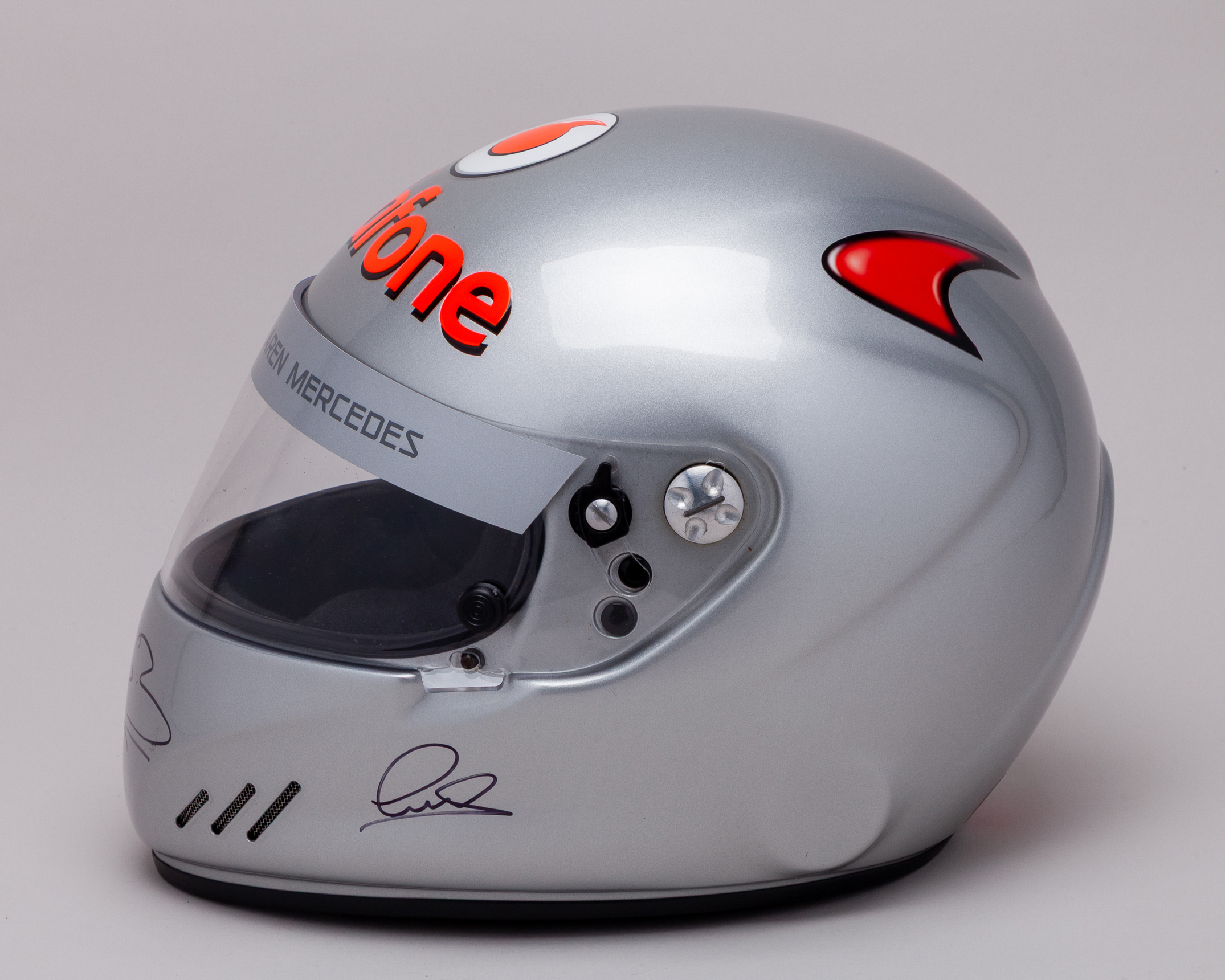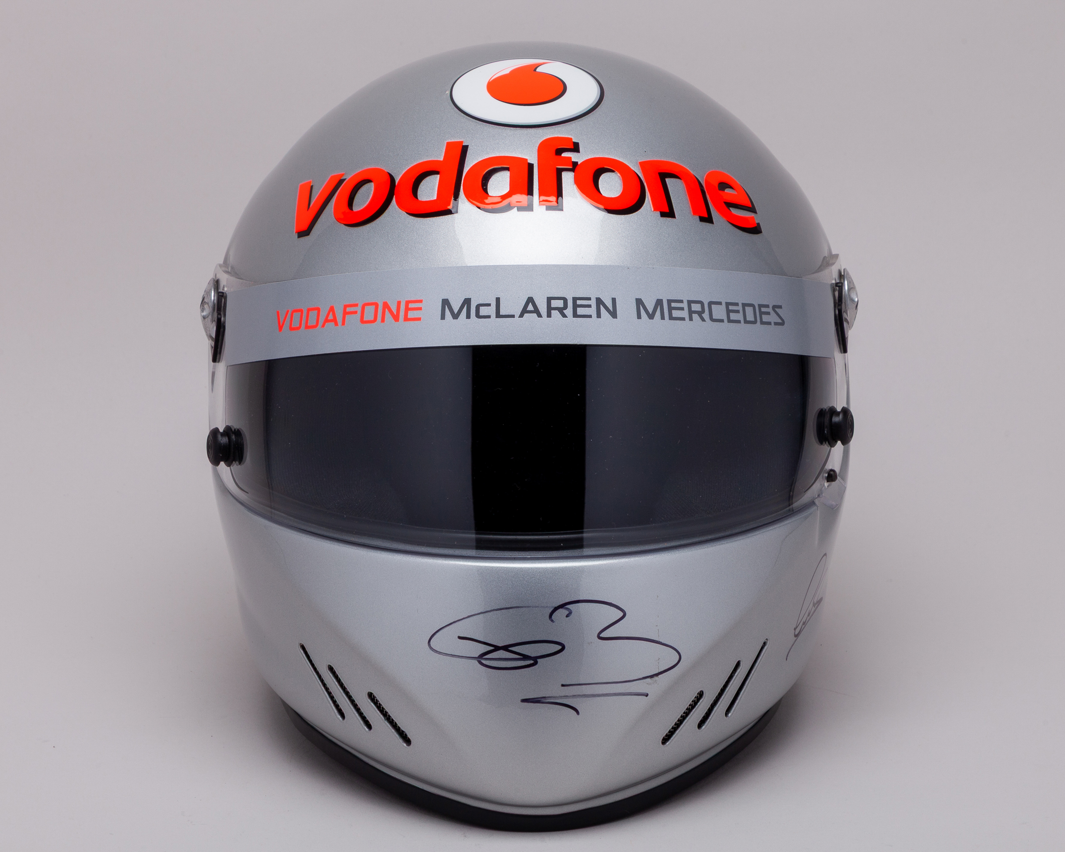 This helmet has been personally signed by F1 World Champions, Lewis Hamilton and Jenson Button. The helmet was from a VIP experience day at Silverstone Circuit in which both drivers attended and took VIP guests around the track in a sports car. The VIP's were gifted the helmet.