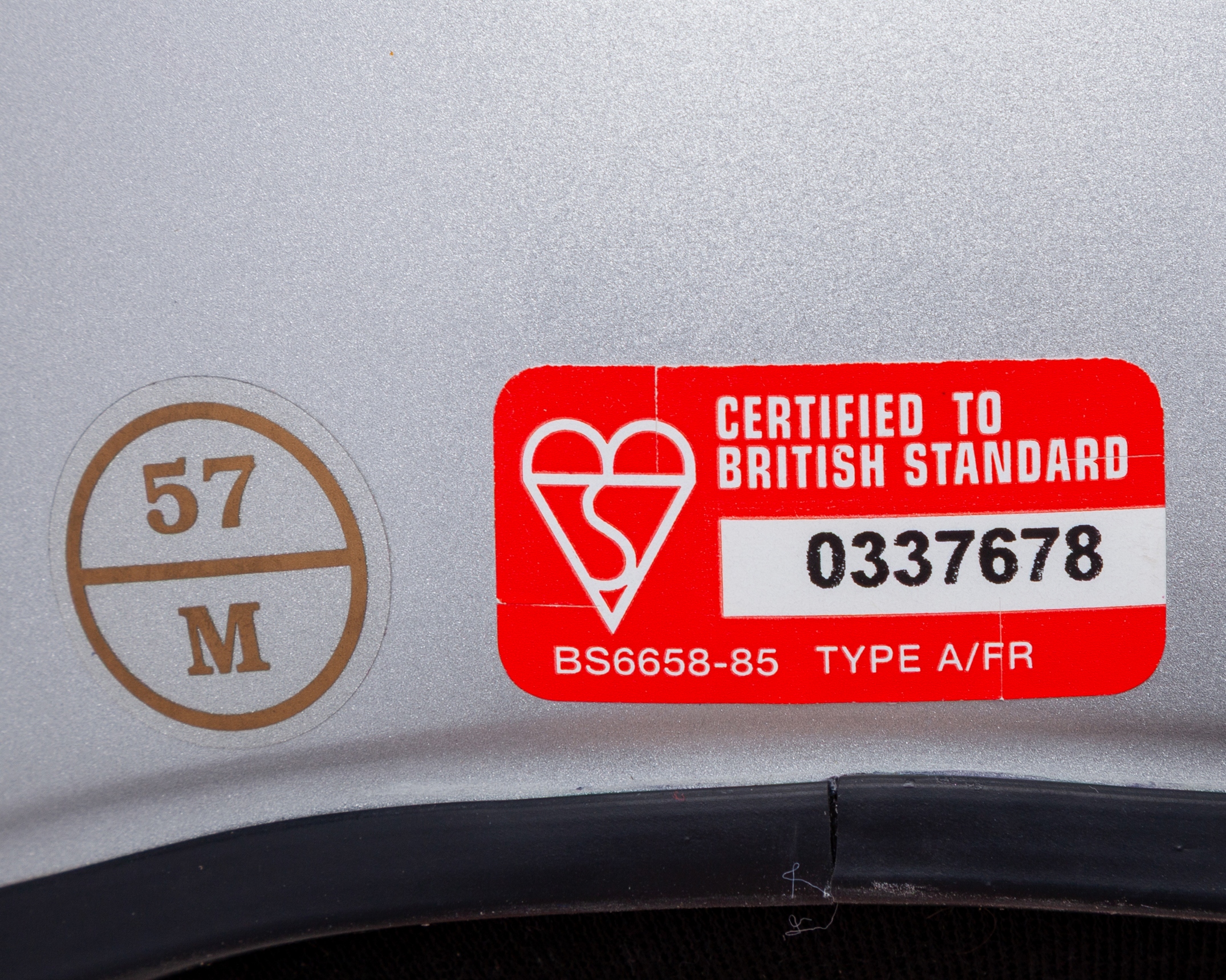 The helmet also has a certified to British standard sticker on the back of the helmet.