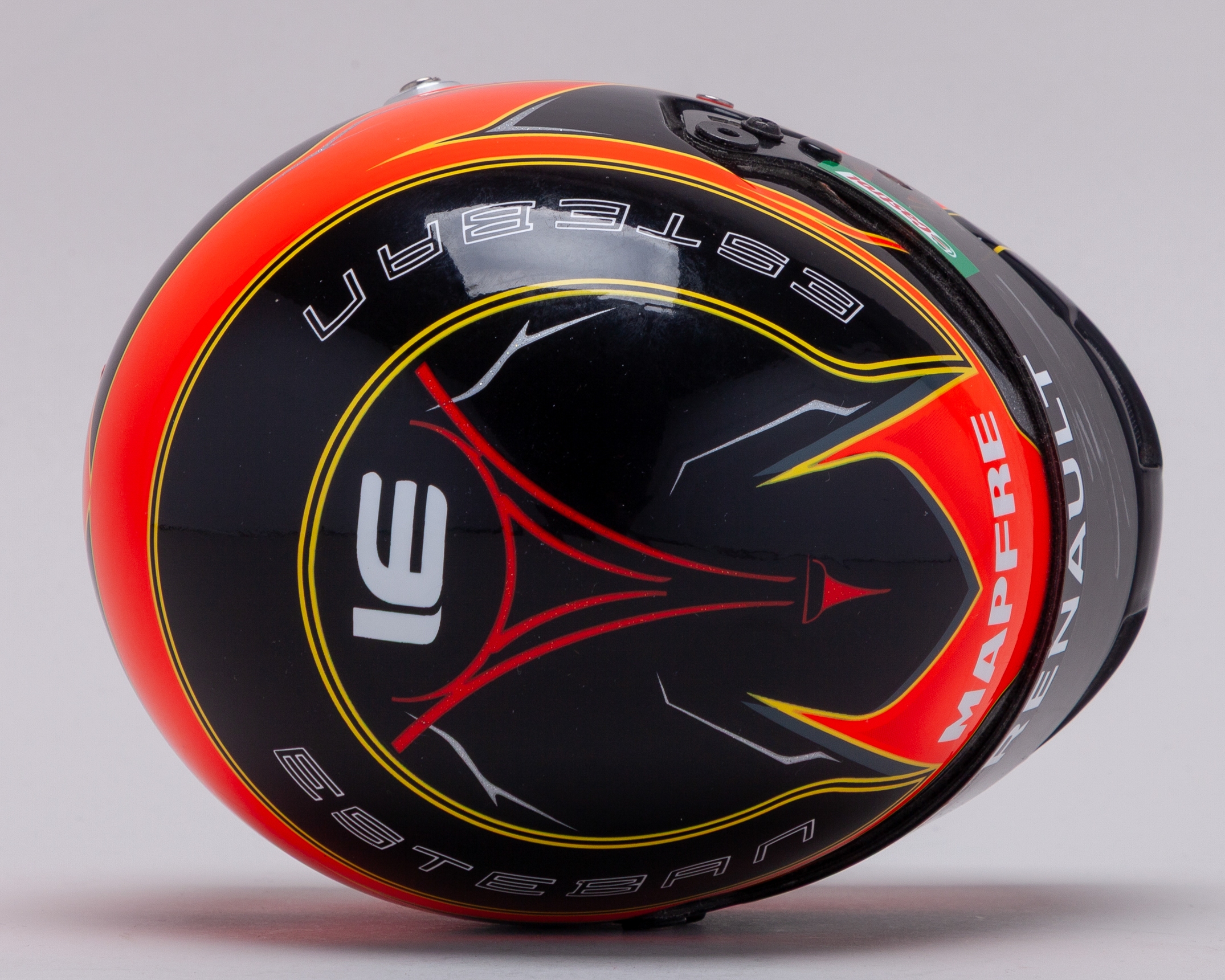 This 1:2 scale Bell Helmet reflects the design worn by Ocon during the 2020 F1 season with the Renault F1 Team. The helmet has been personally hand-signed by Ocon.