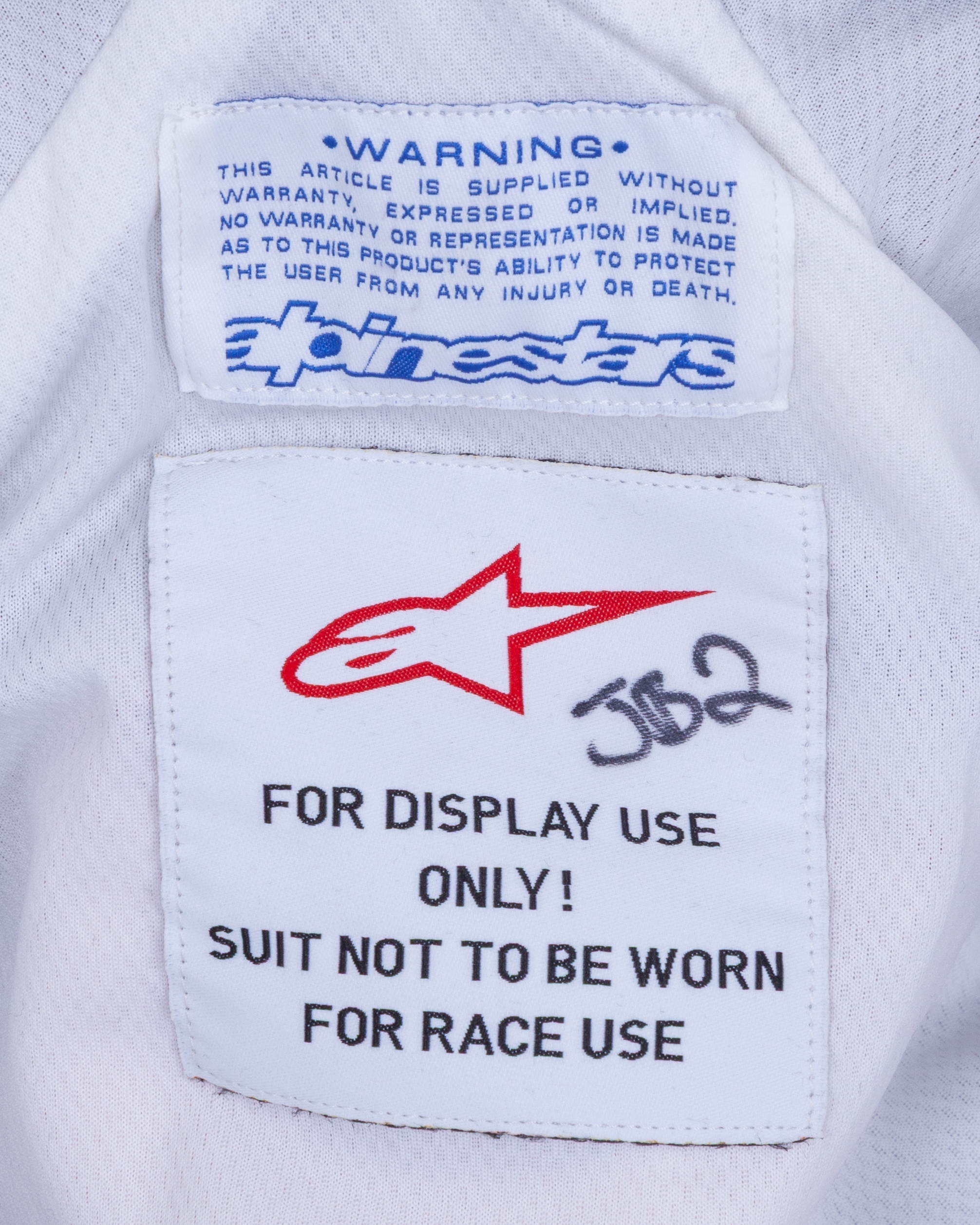 Complete with a letter of authenticity from Honda F1 Racing and an Alpinestars race suit bag.