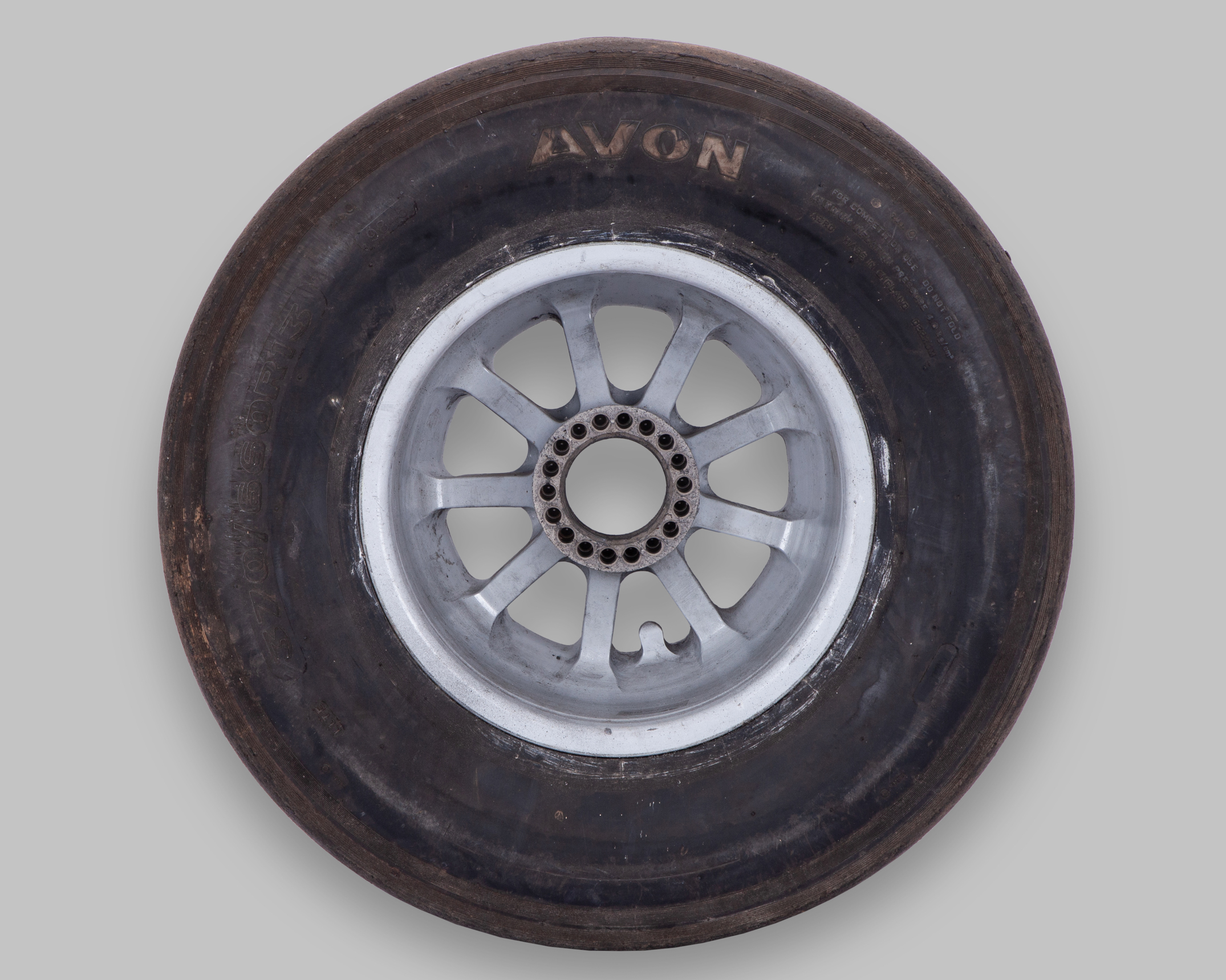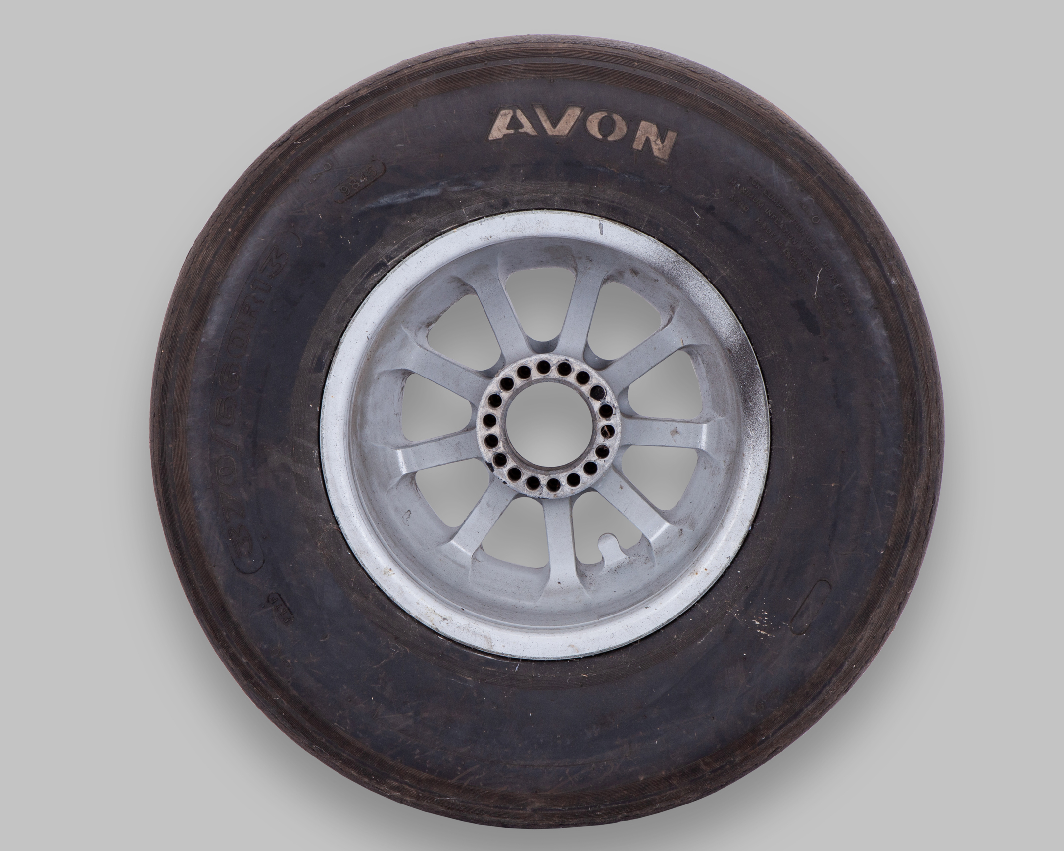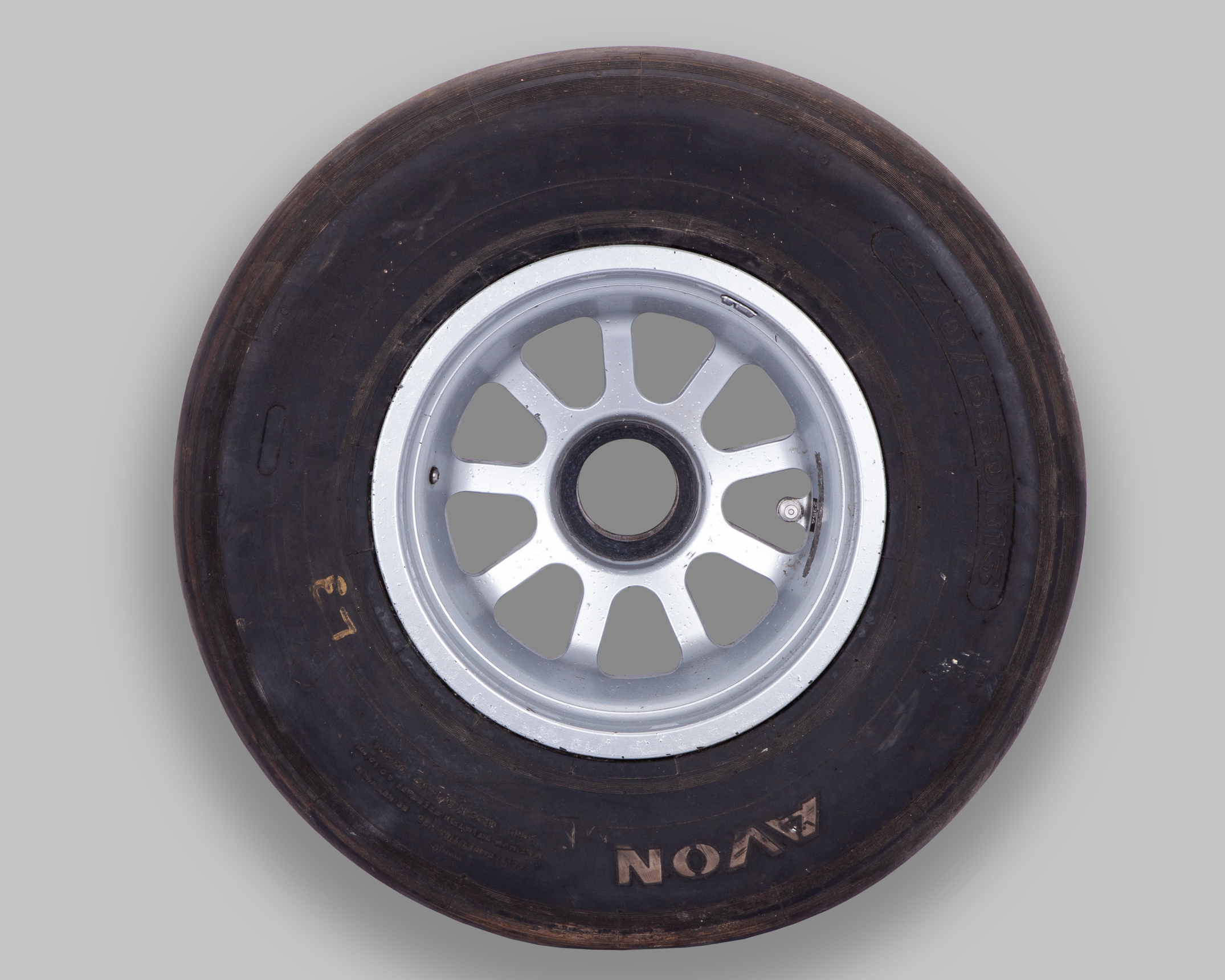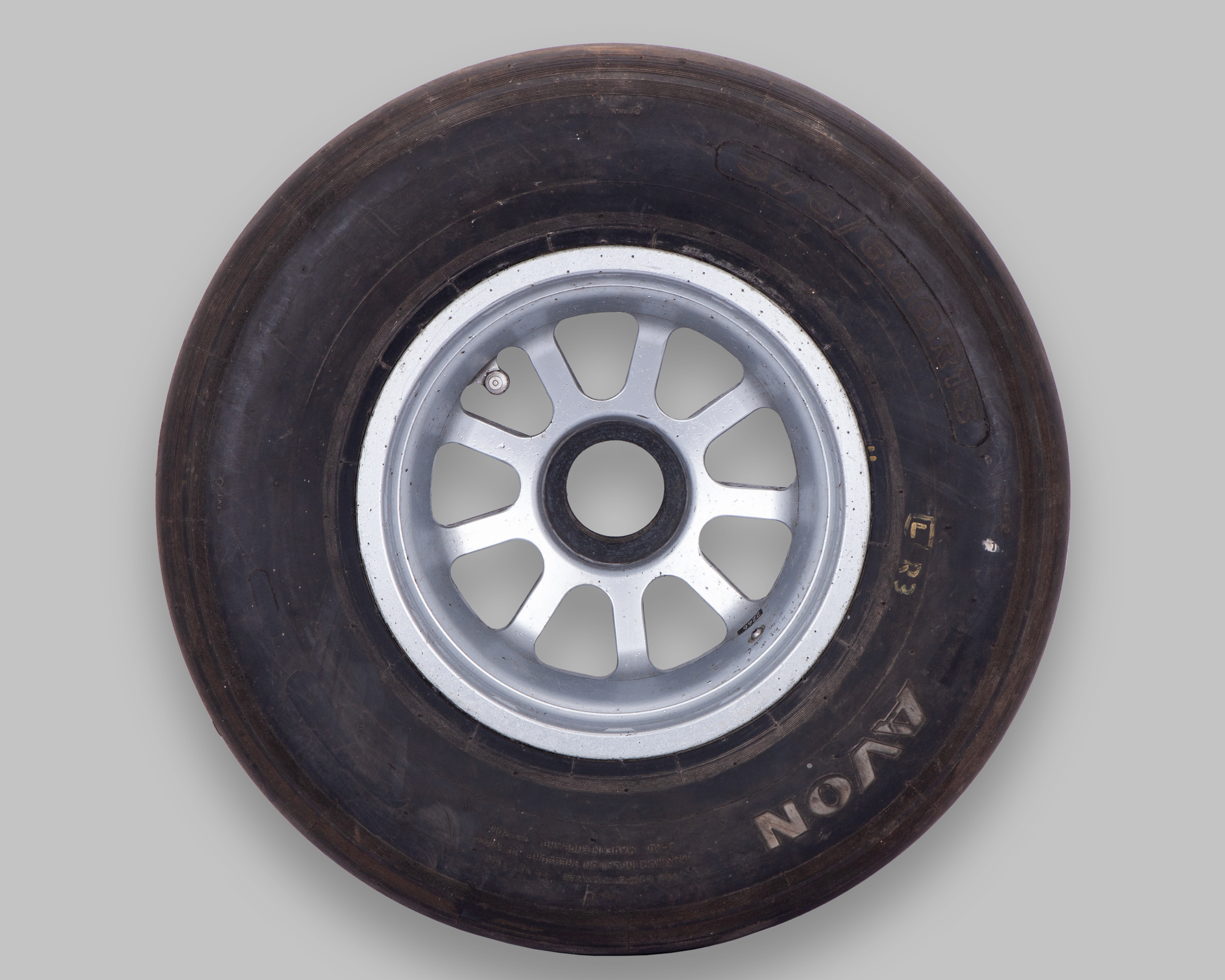 This pair of magnesium F1 wheels and tyres are believed to originate from the Arrows Grand Prix team, active in Formula One from 1978 to 2002.