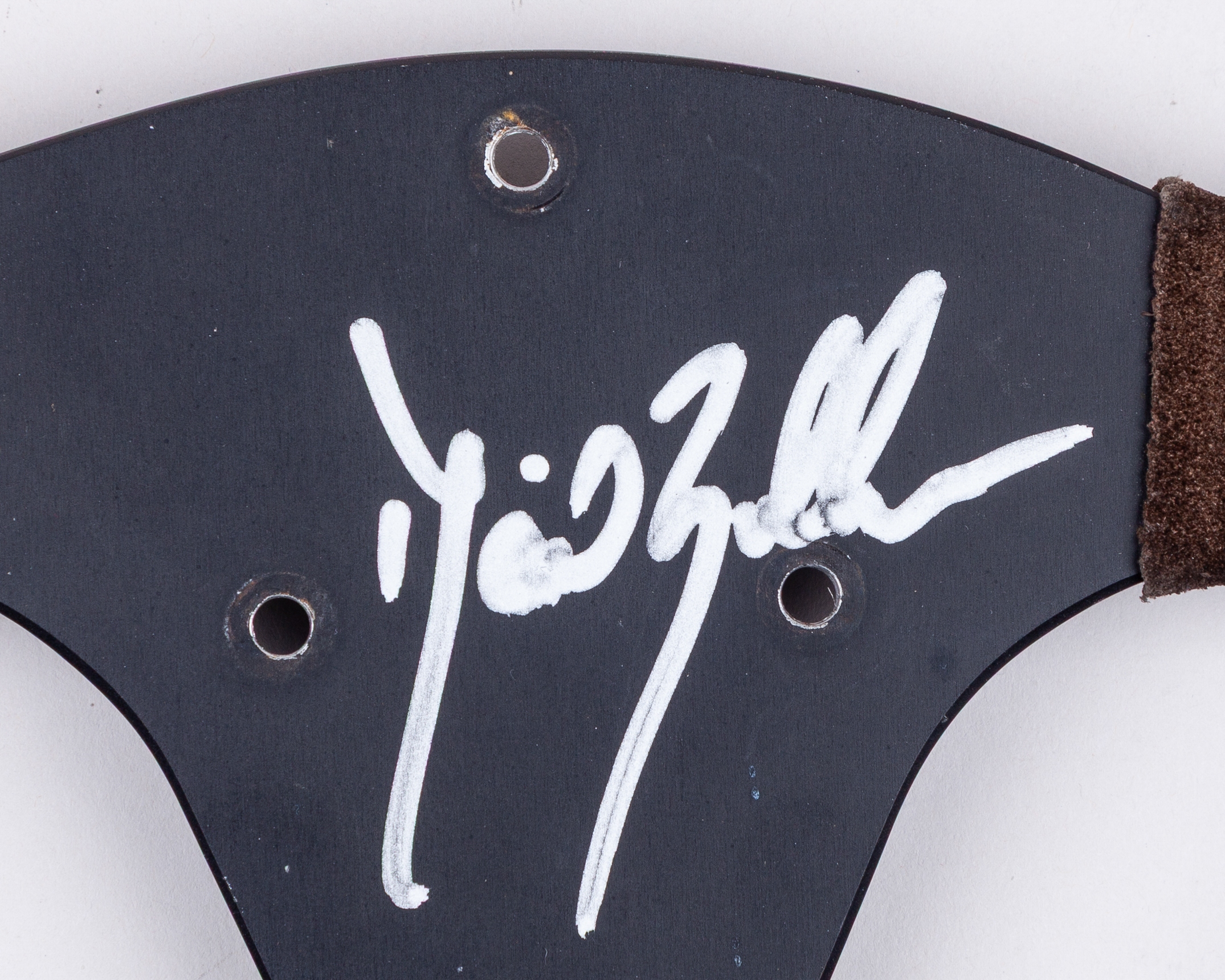 This unique ‘travel’ steering wheel was used to transport the Simtek cars between races during the 1994 Formula One season. The steering wheel has been personally signed by David Brabham and offered with an embroidered Simtek drivers suit patch.