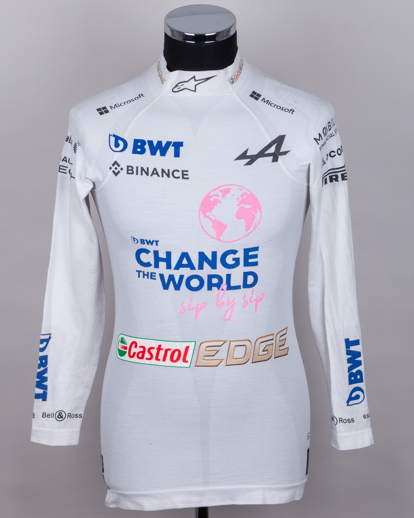 This nomex top was worn by Esteban Ocon, during his time with the Alpine F1 Team.