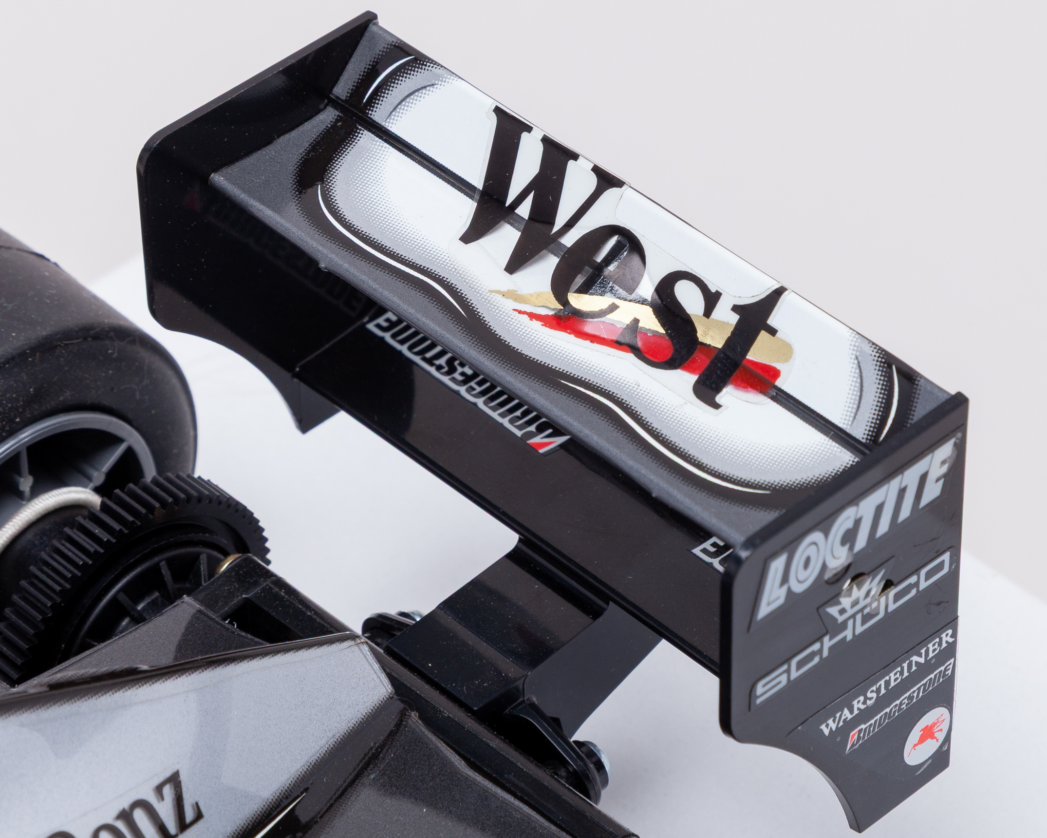 The model has only been function-tested under authorised Carson supervision. The livery on the model features full period sponsorship including West, Mobil 1, Loctite, Schüco, Warsteiner, Mercedes-Benz, Schweppes, and Computer Associates.