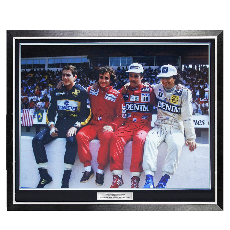 Nigel Mansell, Alain Prost & Nelson Piquet Signed Large Framed Photo – Wall of Champions