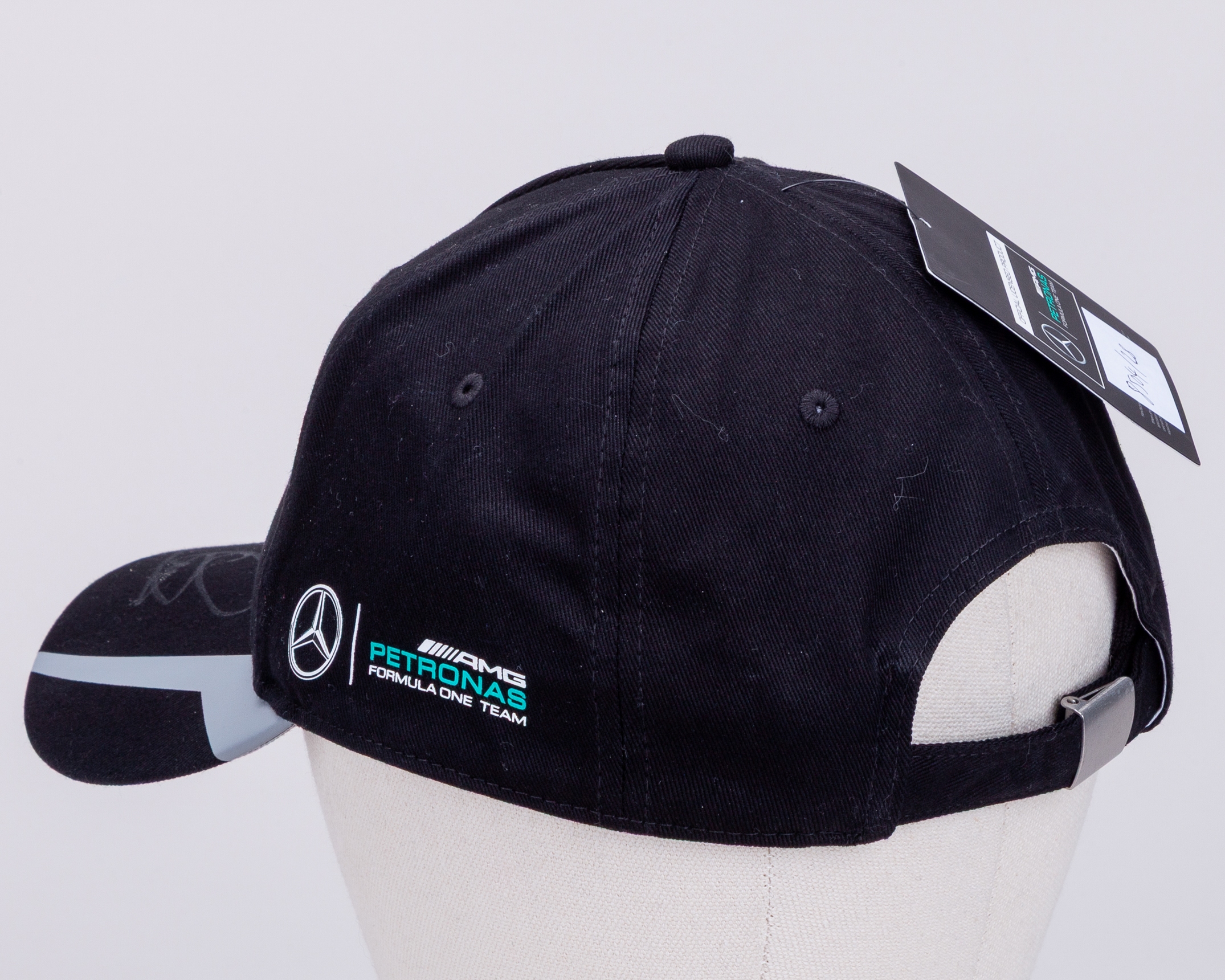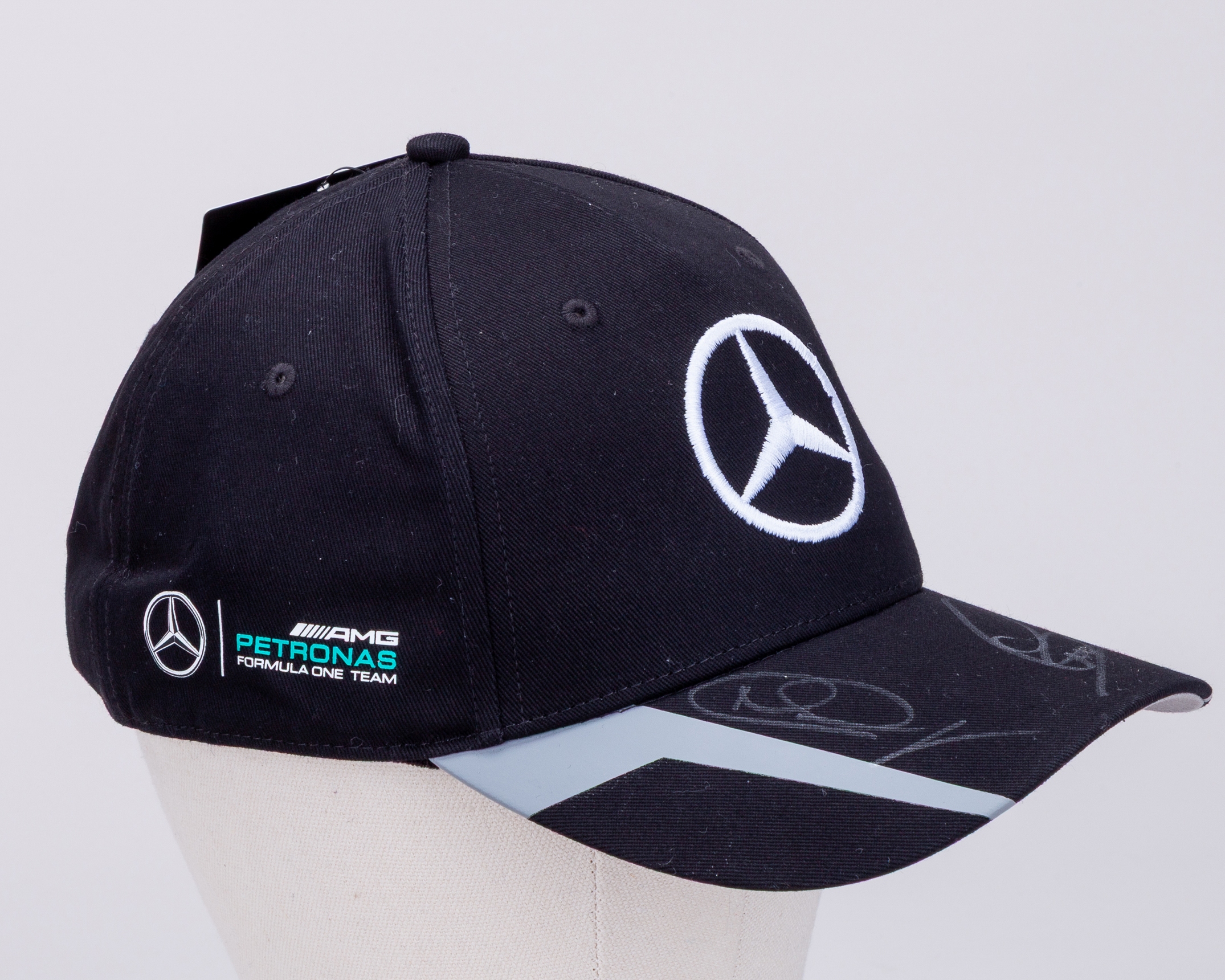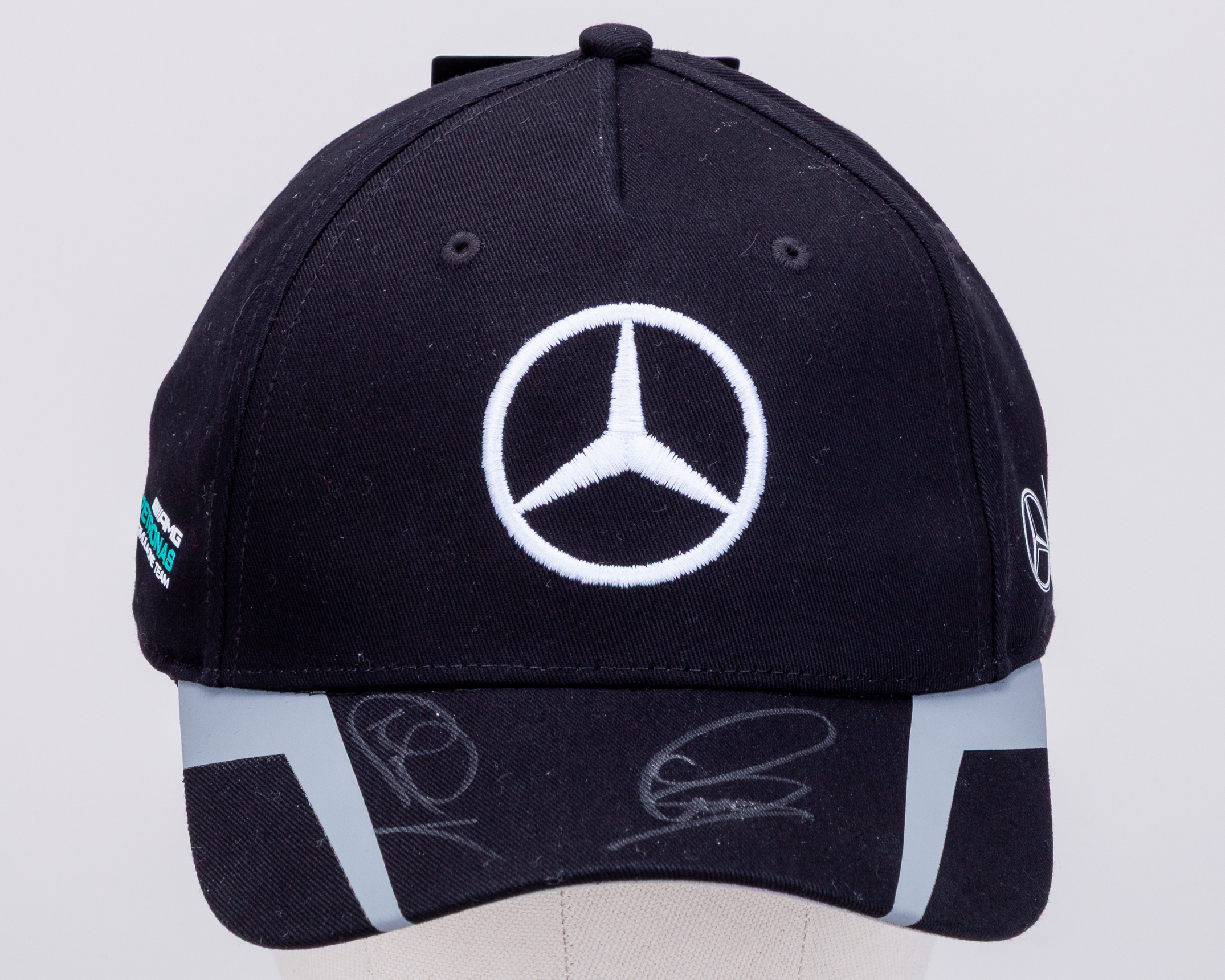 This is an official Mercedes AMG Petronas F1 Team cap, personally hand signed by 7-time F1 World Champion Lewis Hamilton, and F1 World Champion Nico Rosberg.