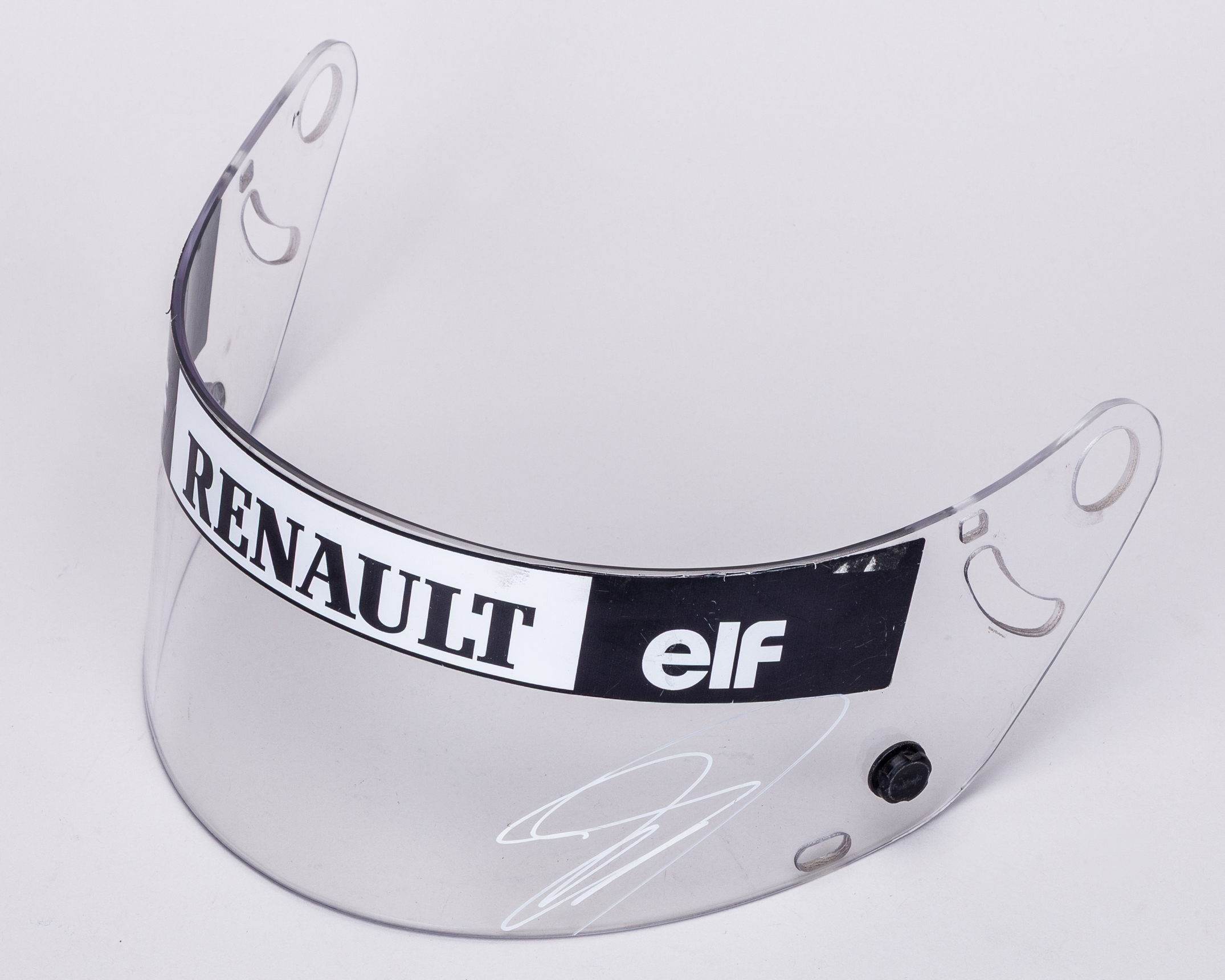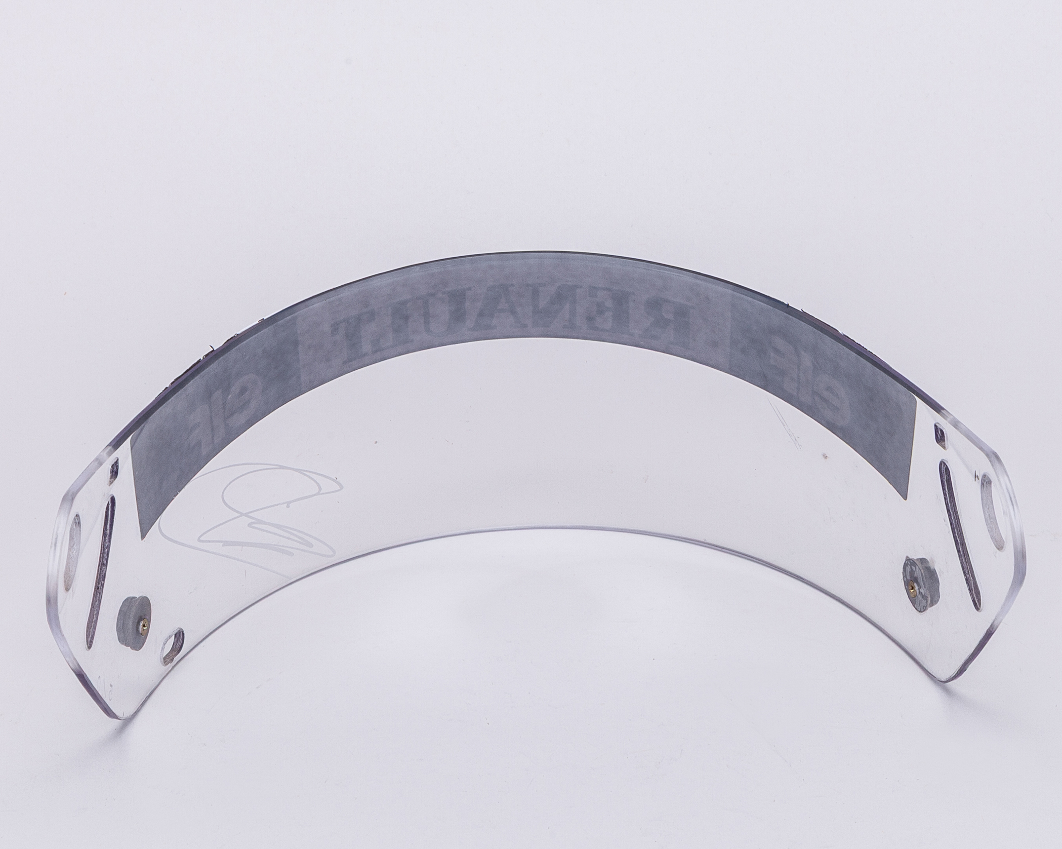 This is a used Williams F1 Team visor, personally signed by former F1 driver David Coulthard. Worn during his time with the Williams F1 Team between 1993 - 1995.