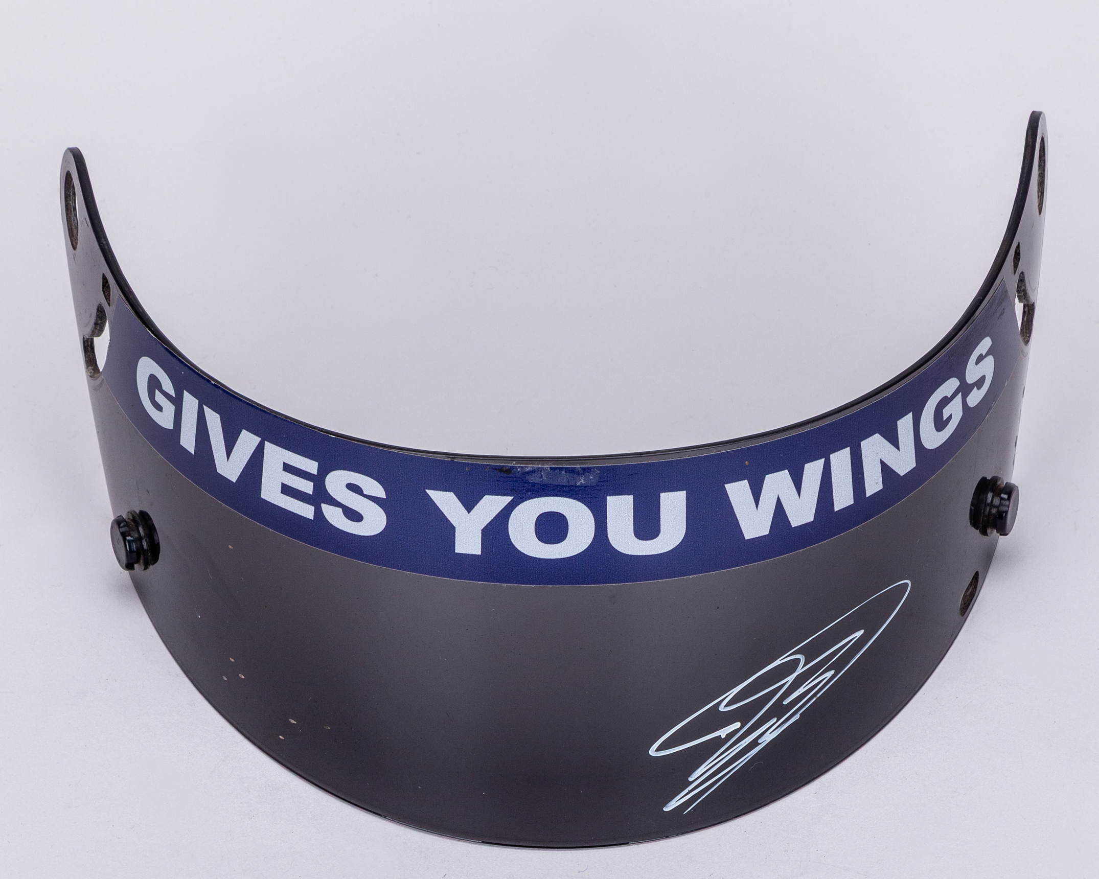This is a used Red Bull Racing visor, personally signed by former F1 driver David Coulthard. Worn during his time with Red Bull Racing between 2005 - 2009.