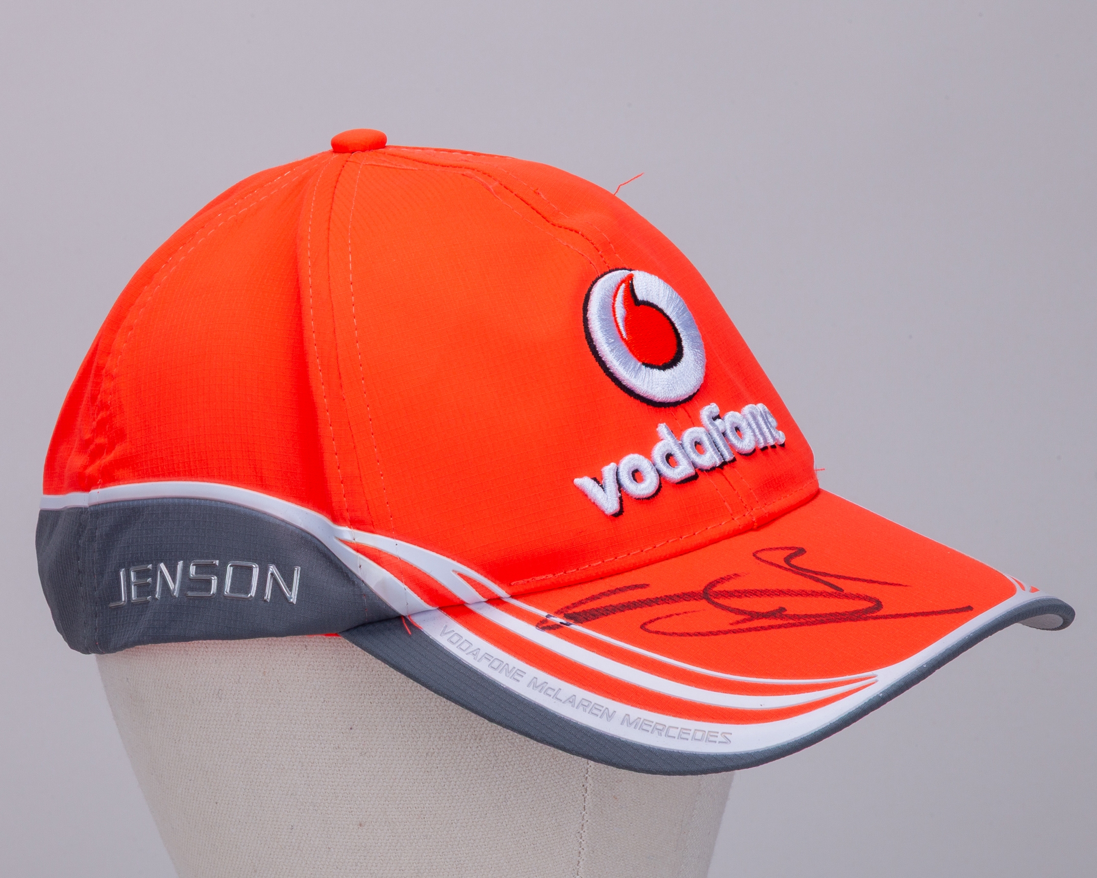 This is an official McLaren F1 Team cap, personally signed by F1 World Champion Jenson Button.