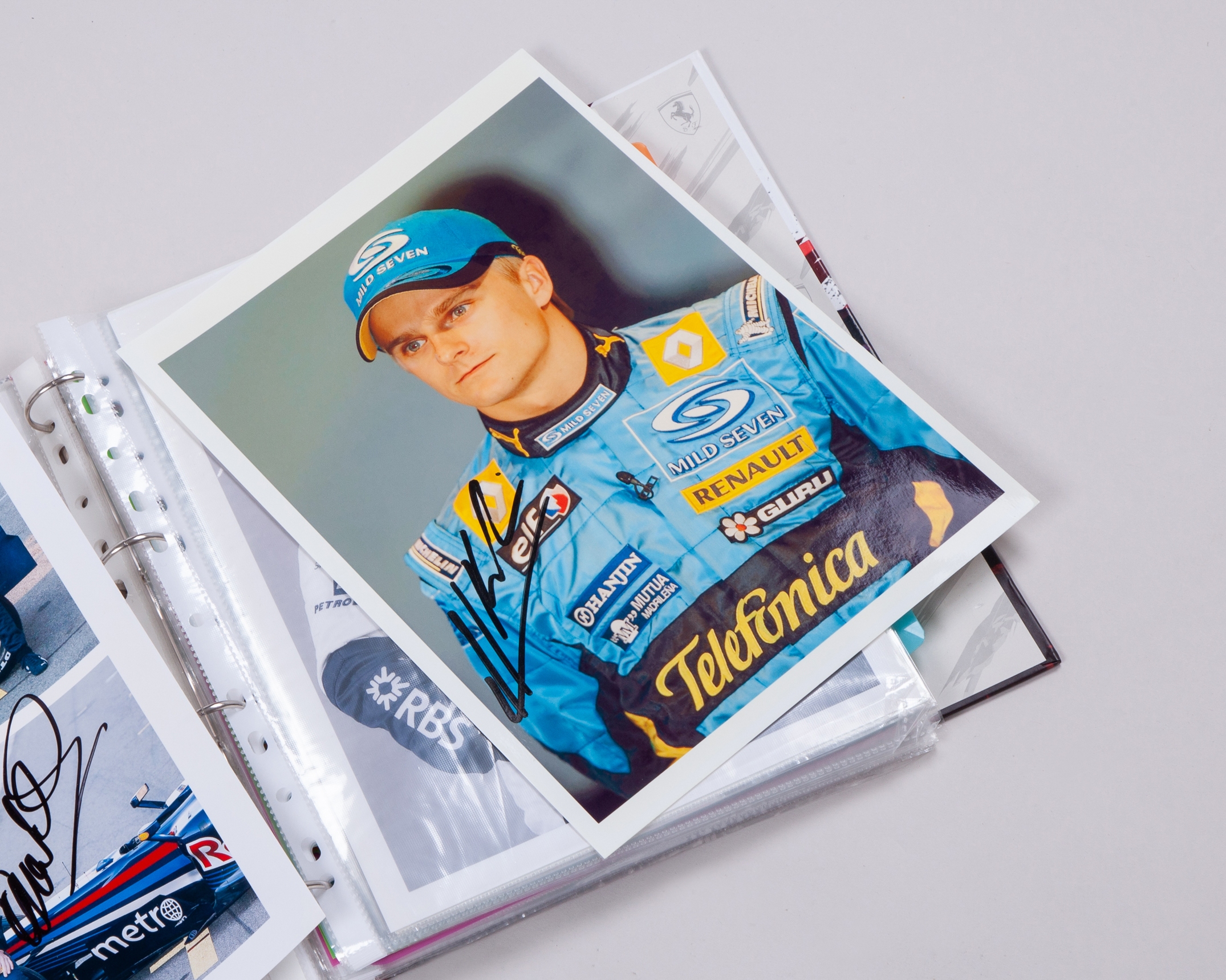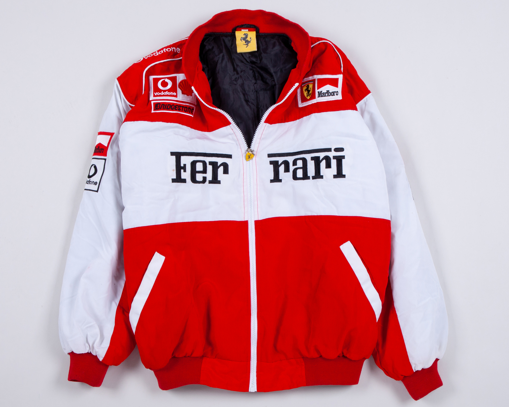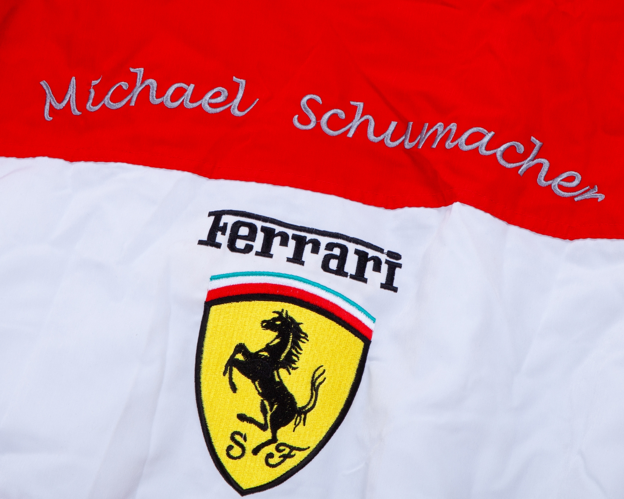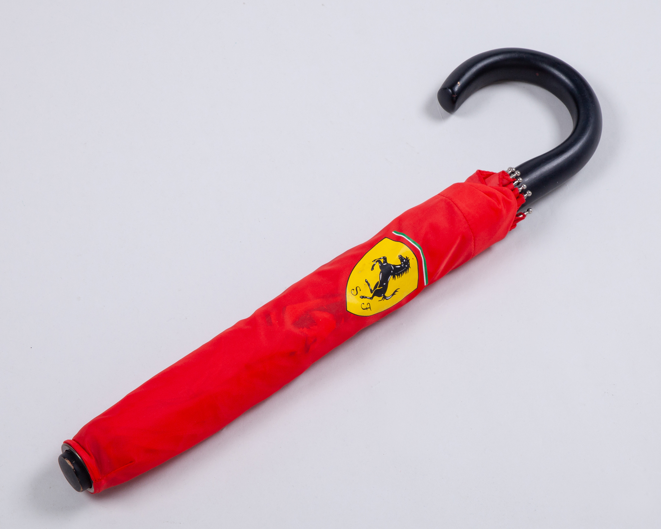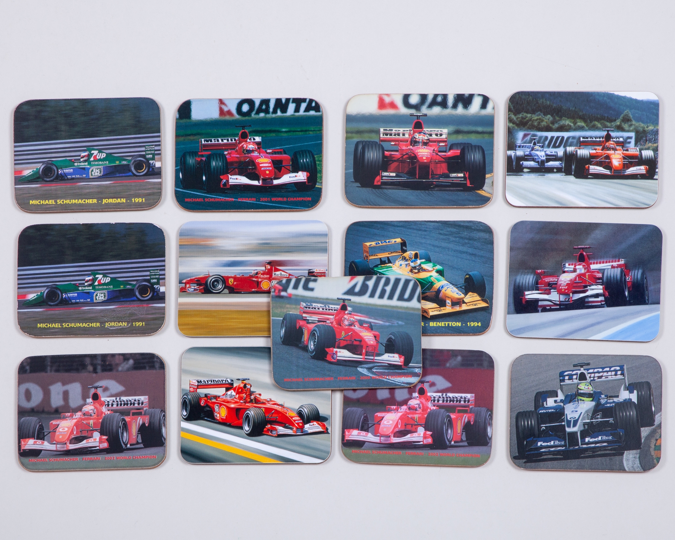 Includes team caps (mainly Michael Schumacher and Ferrari), jacket, t-shirts, calendars, a signed photo book, umbrella, mugs, plates, bags, Ferrari postcards and drink mats.