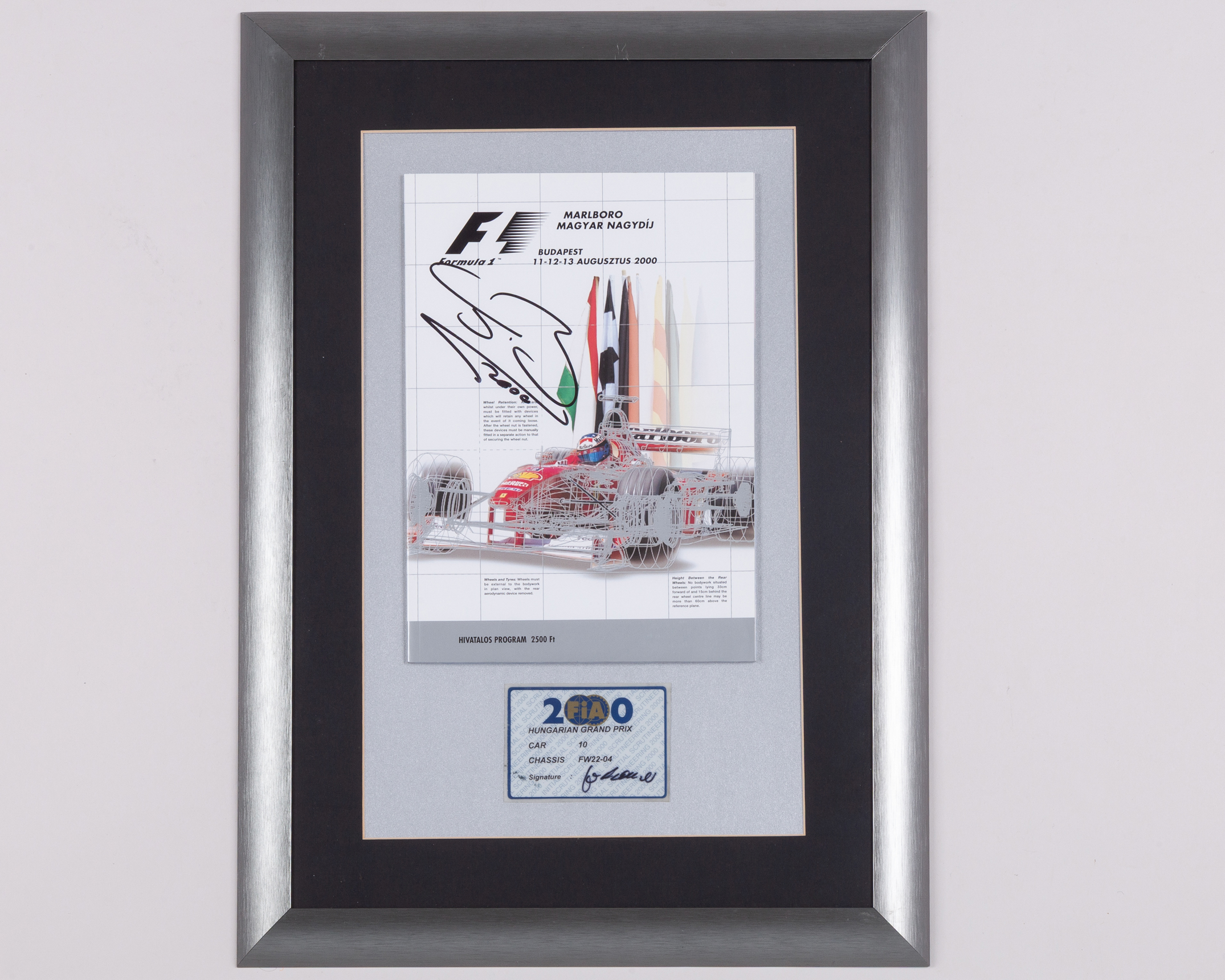 Jenson Button 2000 Hungarian Grand Prix Signed Framed Programme With Scrutineering Pass.