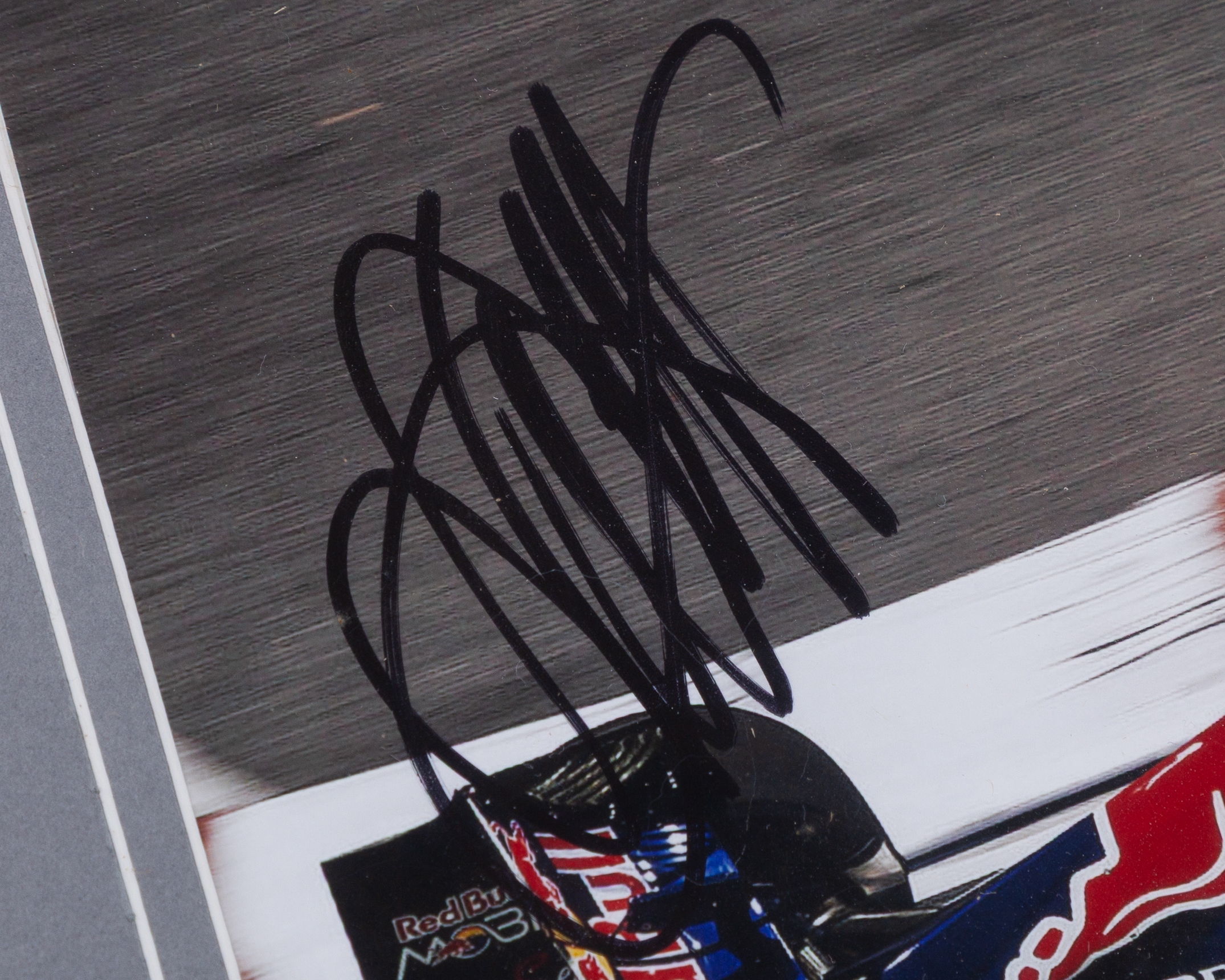 This professionally framed display features an original autograph from Sebastian Vettel, captured during his record-breaking 2013 season with Red Bull Racing.