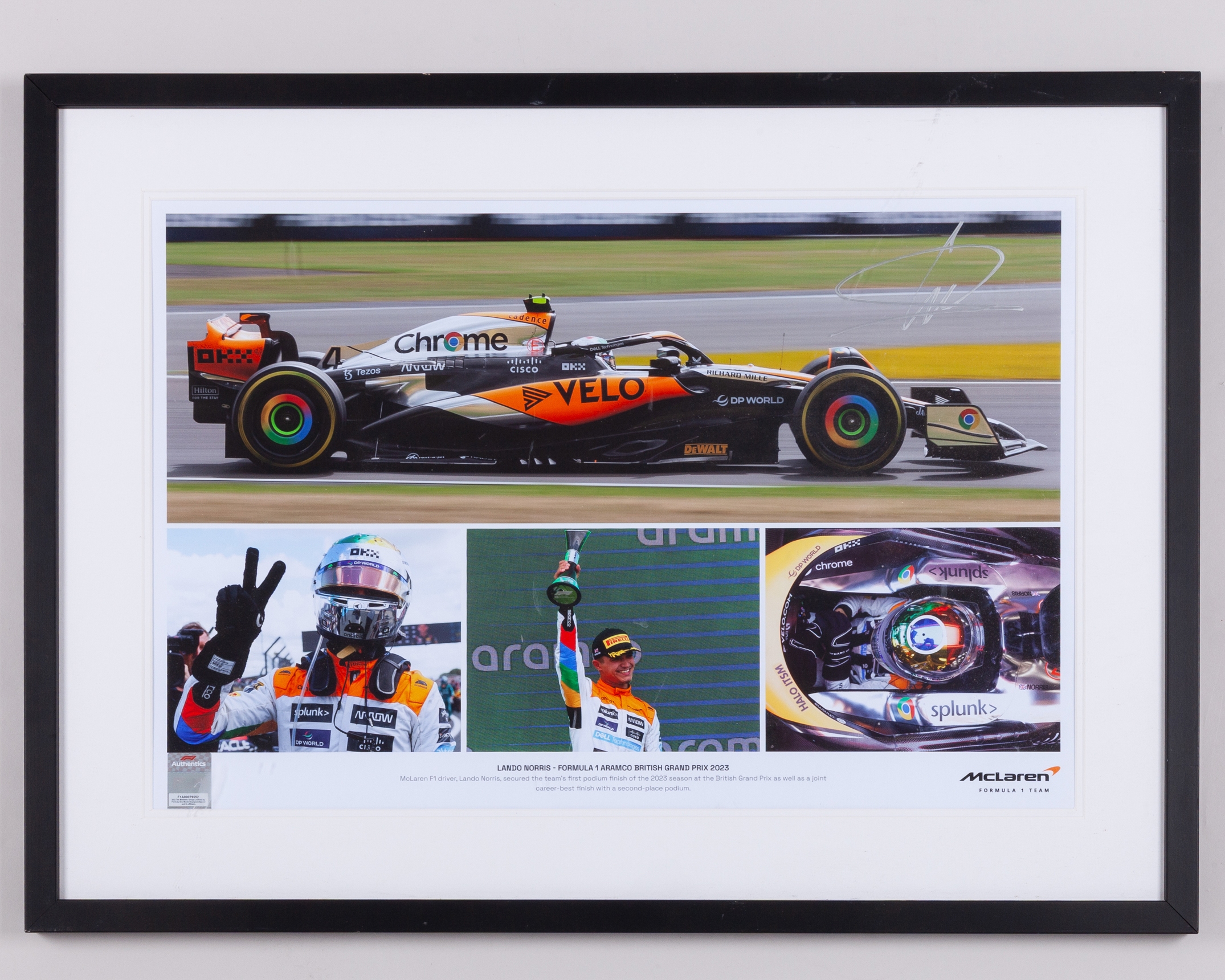 Lando Norris 2023 McLaren F1 Team Signed Framed British Grand Prix Photo.