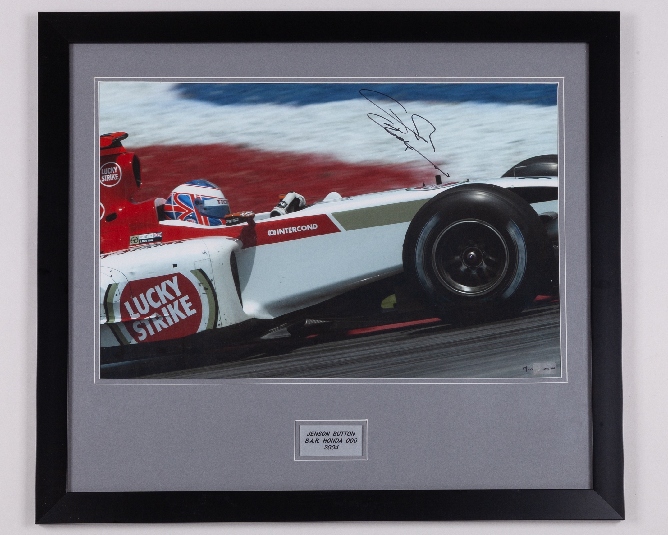 The photo is personally hand signed by Jenson and is limited edition number 17/100.