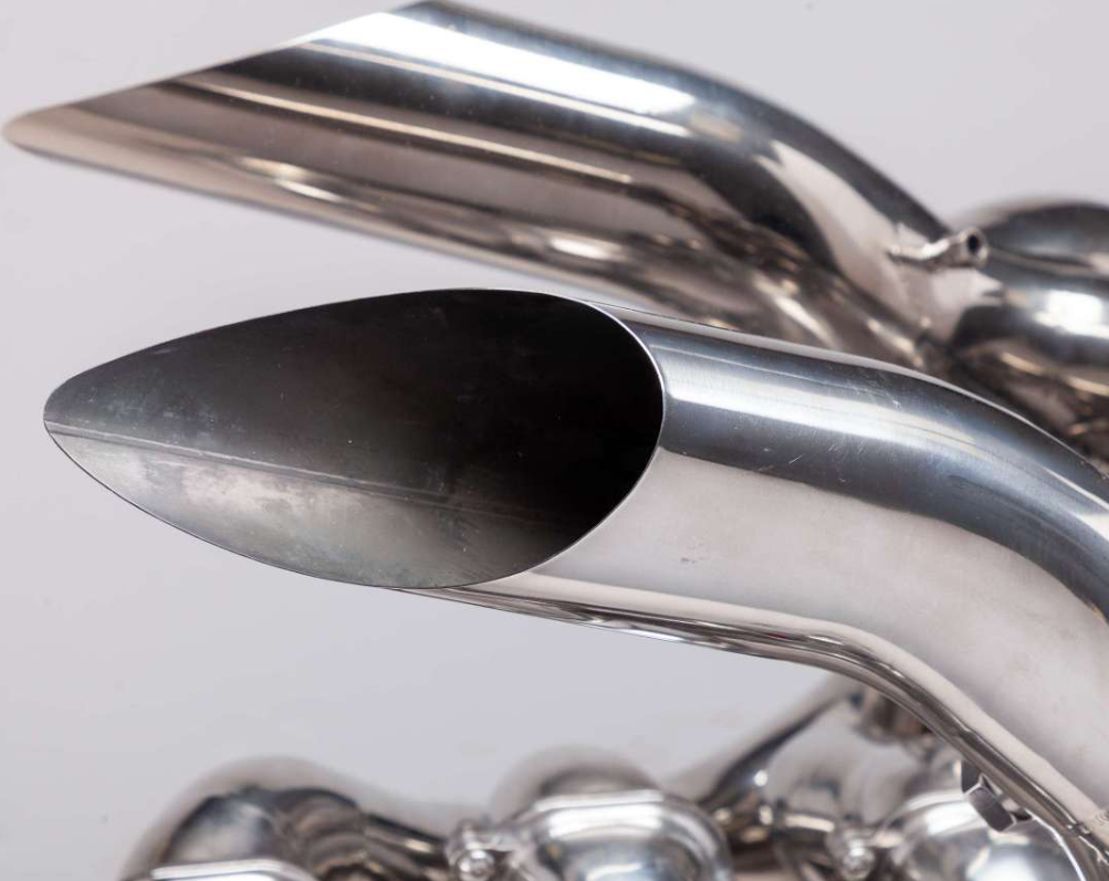 The exhaust has been hand polished for the luxury finish. Made from Inconel this exhaust is mounted on a mirror polished stainless steel frame with 5w LED light detail.
