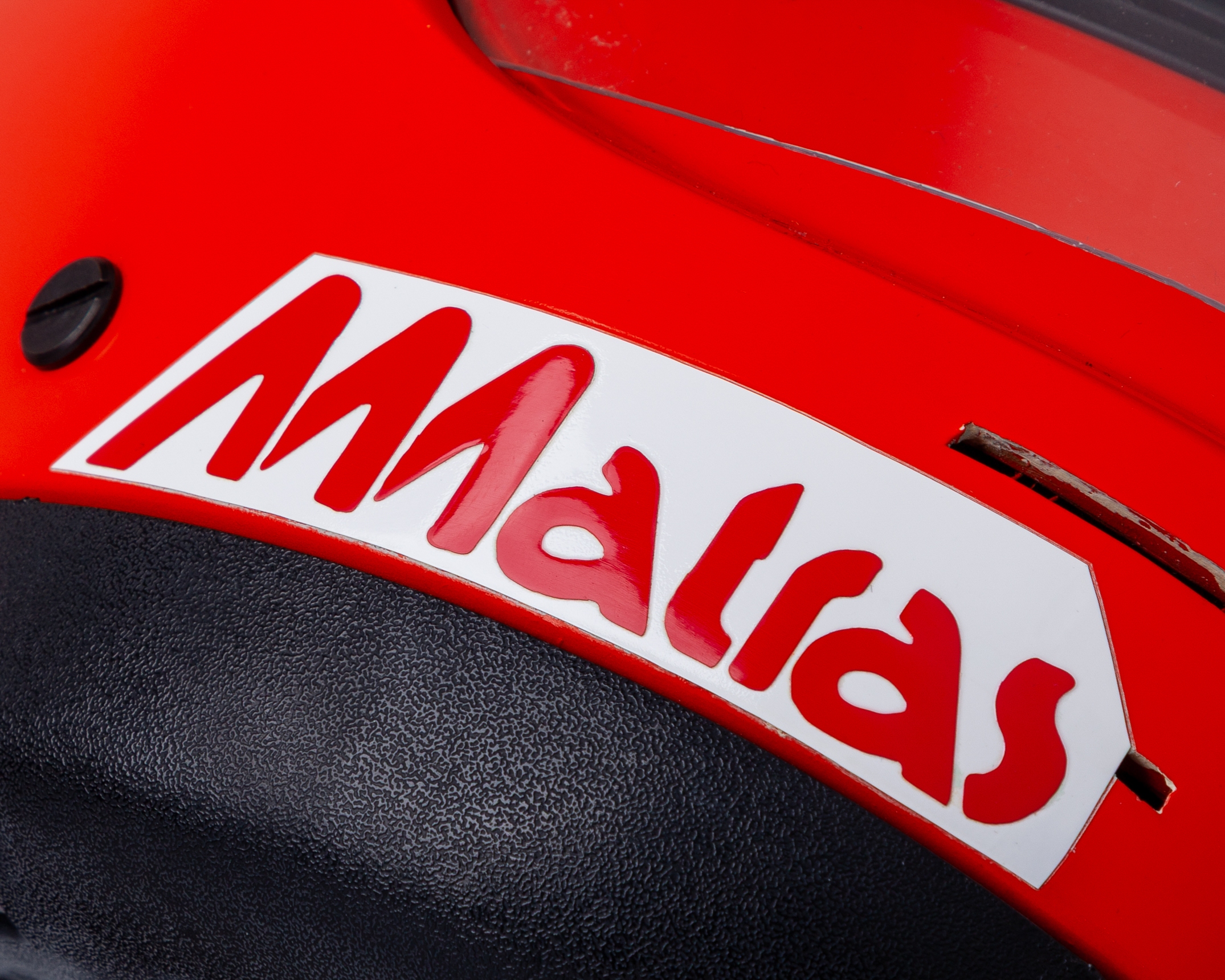 This replica helmet features branding such as Marlboro, Labatt, and SMEG. The sticker on the back of the helmet reads: ECE 22 02 STANDARD.