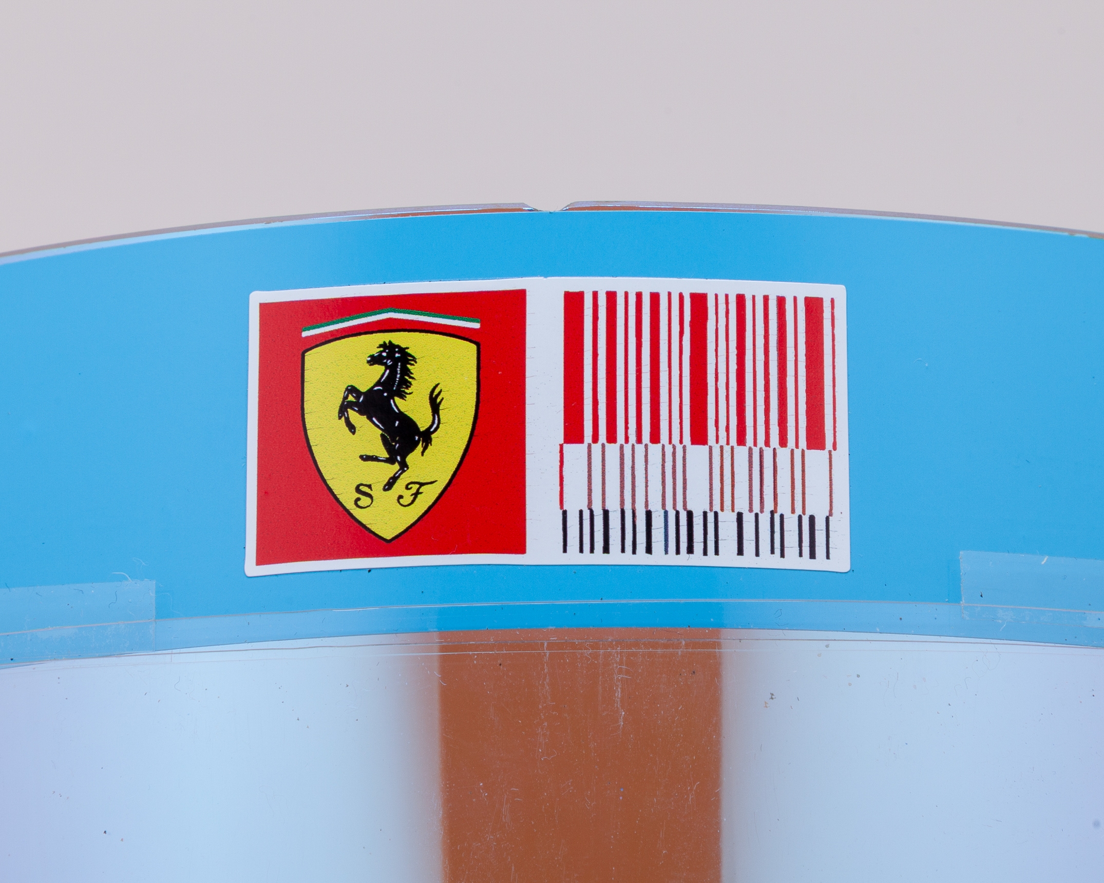 Featuring the Ferrari team branding, as well as Alonso's signature blue tint.