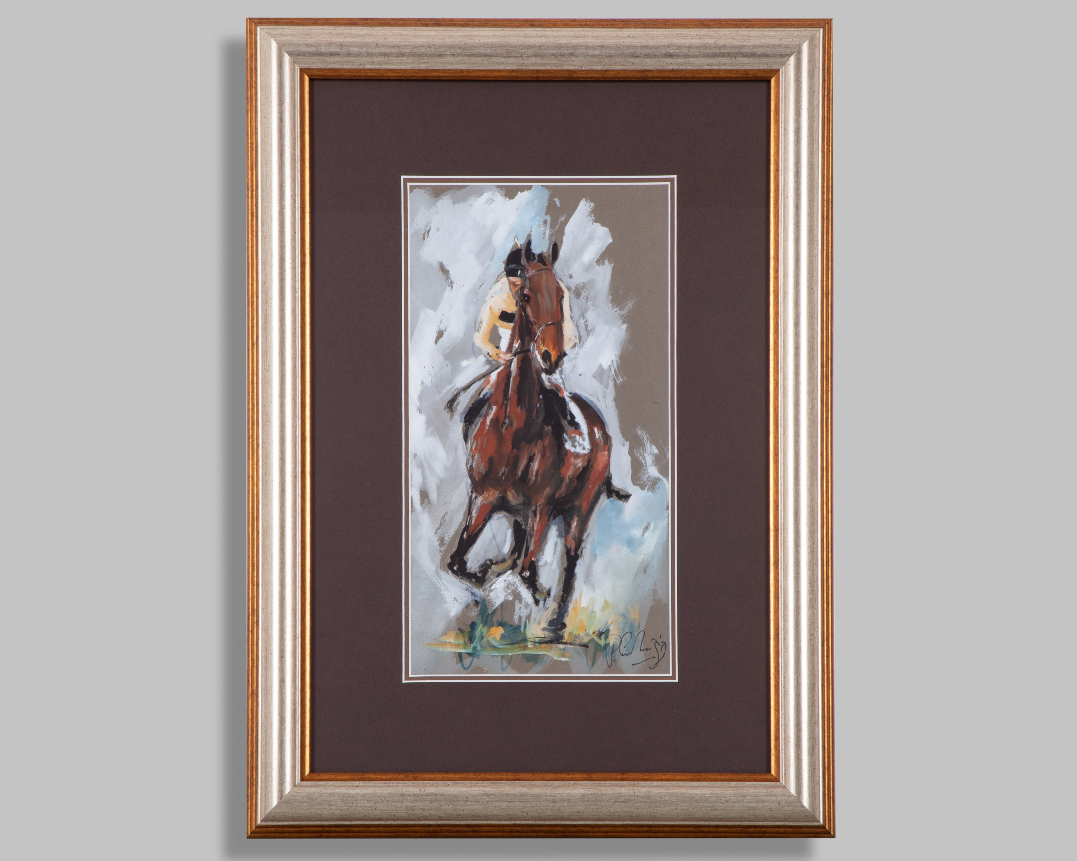 Peter Curling (Irish, b.1955) gouache painting of the racecourse Arkle