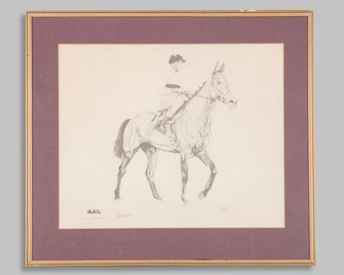 the first print by Desmond Snee (Irish, 1957-2005), dated 2nd March 1990, with central portrait of Arkle surrounded by portrait vignettes of owner, trainer and jockeys associated with the horse, mounted framed & glazed, 74 by 86; the second a print after a pencil drawing of Arkle with Pat Taaffe up, signed F. Taylor, numbered 89 and dated 18/10/81, mounted, framed & glazed, 54 by 60cm.