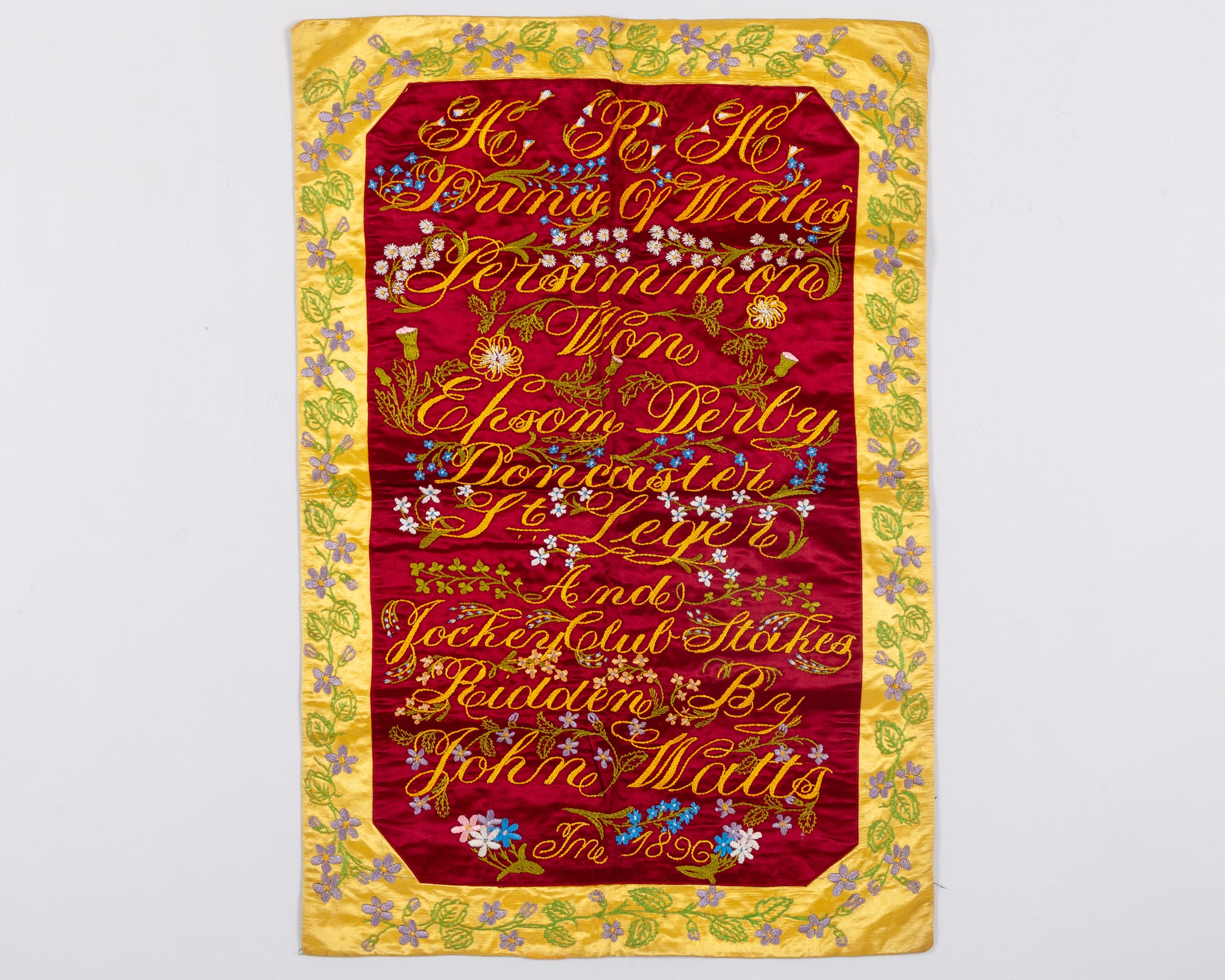 A Victorian embroidery commemorating The Prince of Wales's racehorse Persimmon