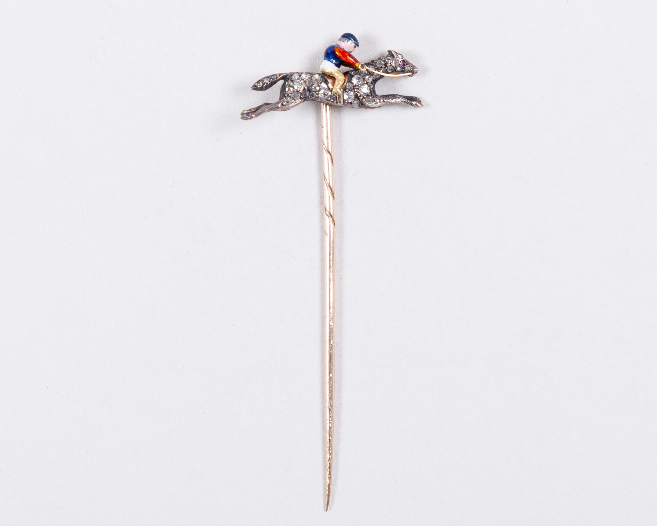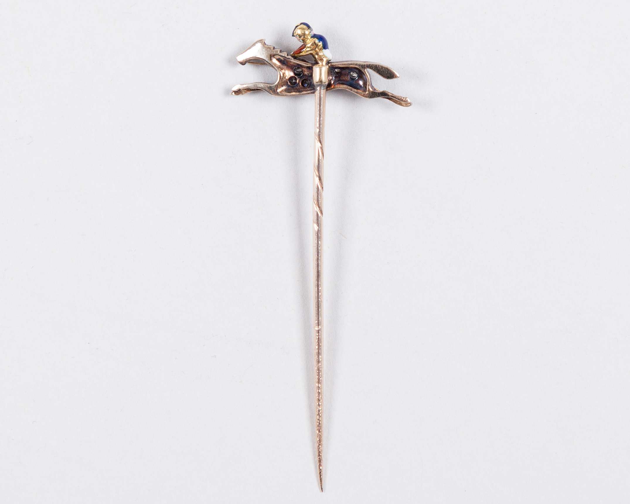 Gold, diamond & enamel stick pin gifted to Royal Jockey John Watts by the Prince of Wales