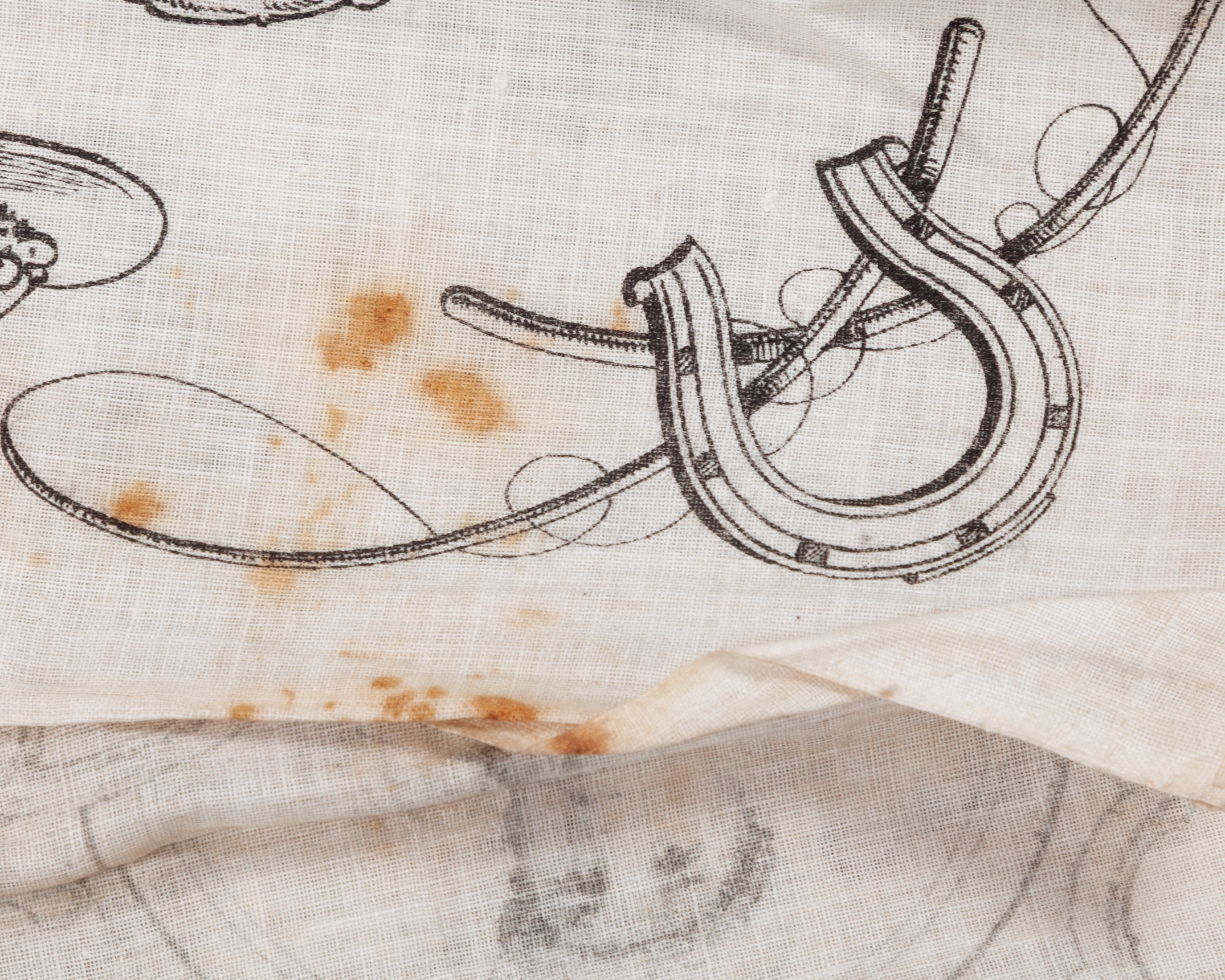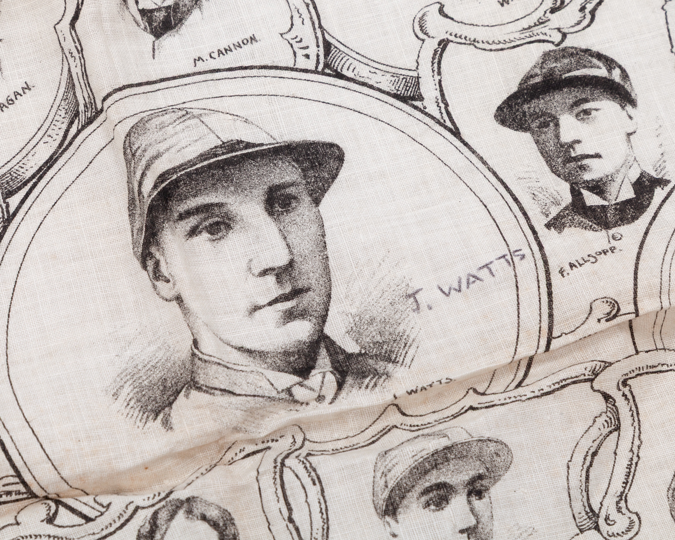 Gentlemen's cotton handkerchief printed with portraits of famous jockeys circa 1900