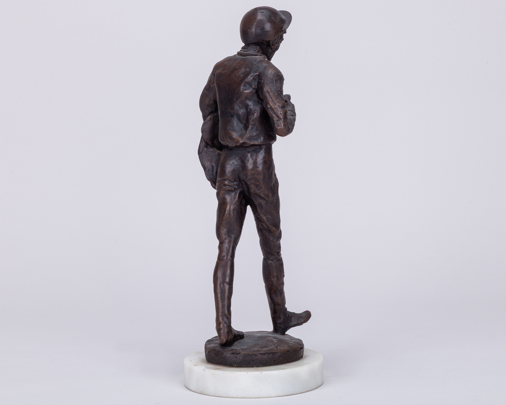 signed Taylor, modelled returning to the weighing room after a race, on a marble base, height 27cm.